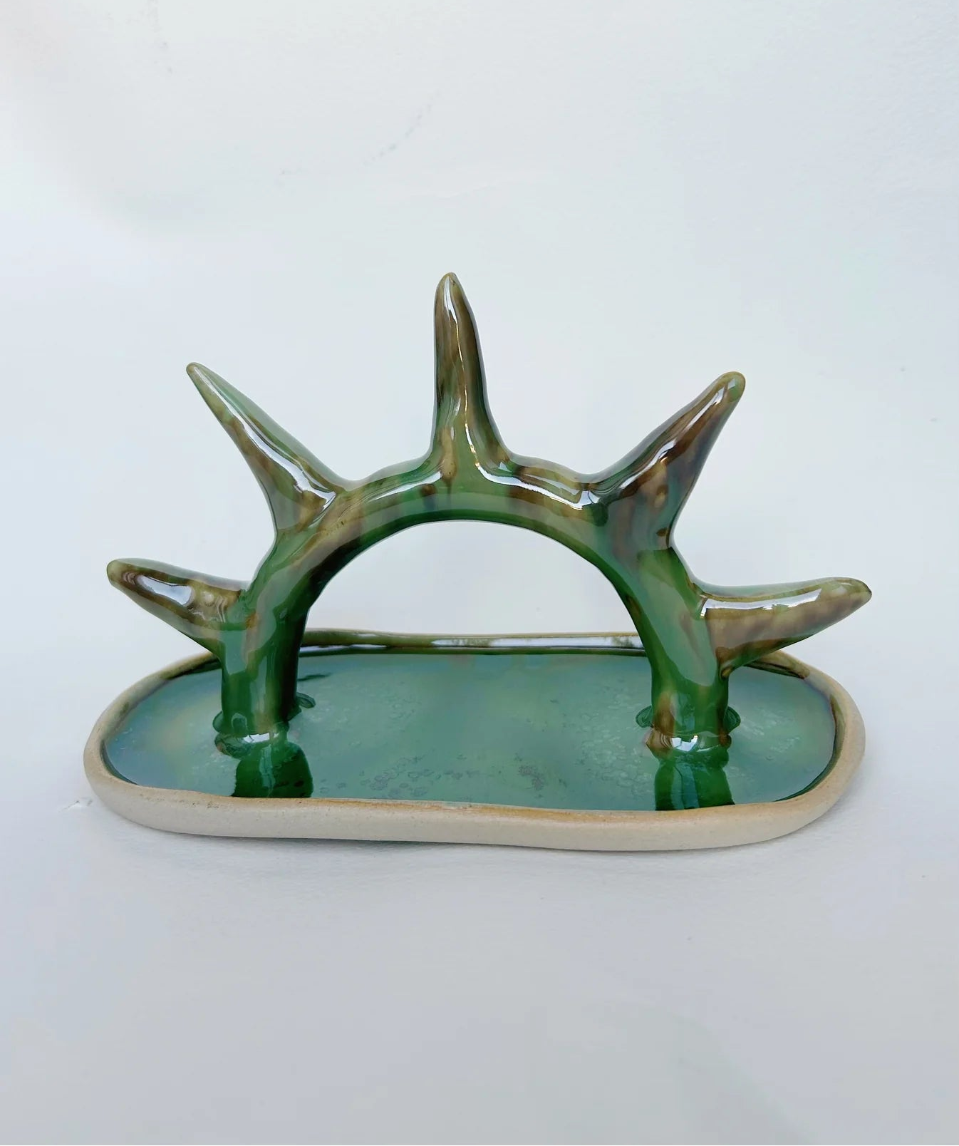 Grön ormbunke keramisk tallrik/prydnadsskål