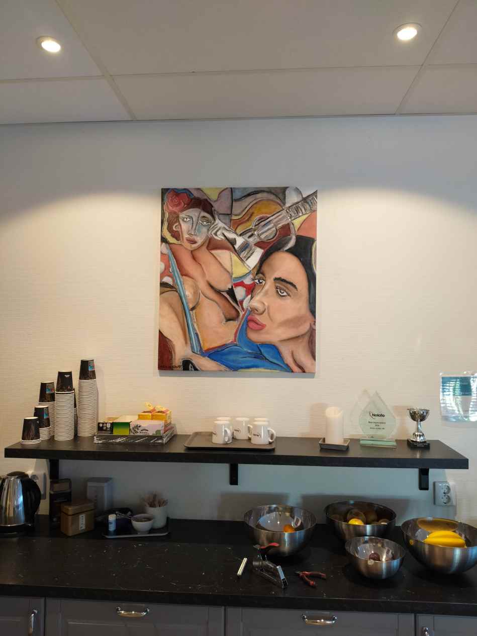 Jag skapar expressiva verk främst med oljestickor och mina händer, snarare än traditionella penslar. Min process är direkt, fysisk och intuitiv — där verket får växa fram ur rörelse och känsla. Jag hämtar inspiration från vardagslivet, från människorna och energin runt omkring mig, och från Latinamerikas färger och kultur. Min passion för kubism är alltid närvarande, men jag tolkar den på mitt eget sätt, genom att blanda struktur med spontanitet. Resultatet är ett visuellt språk som känns rått, modernt och personligt.
