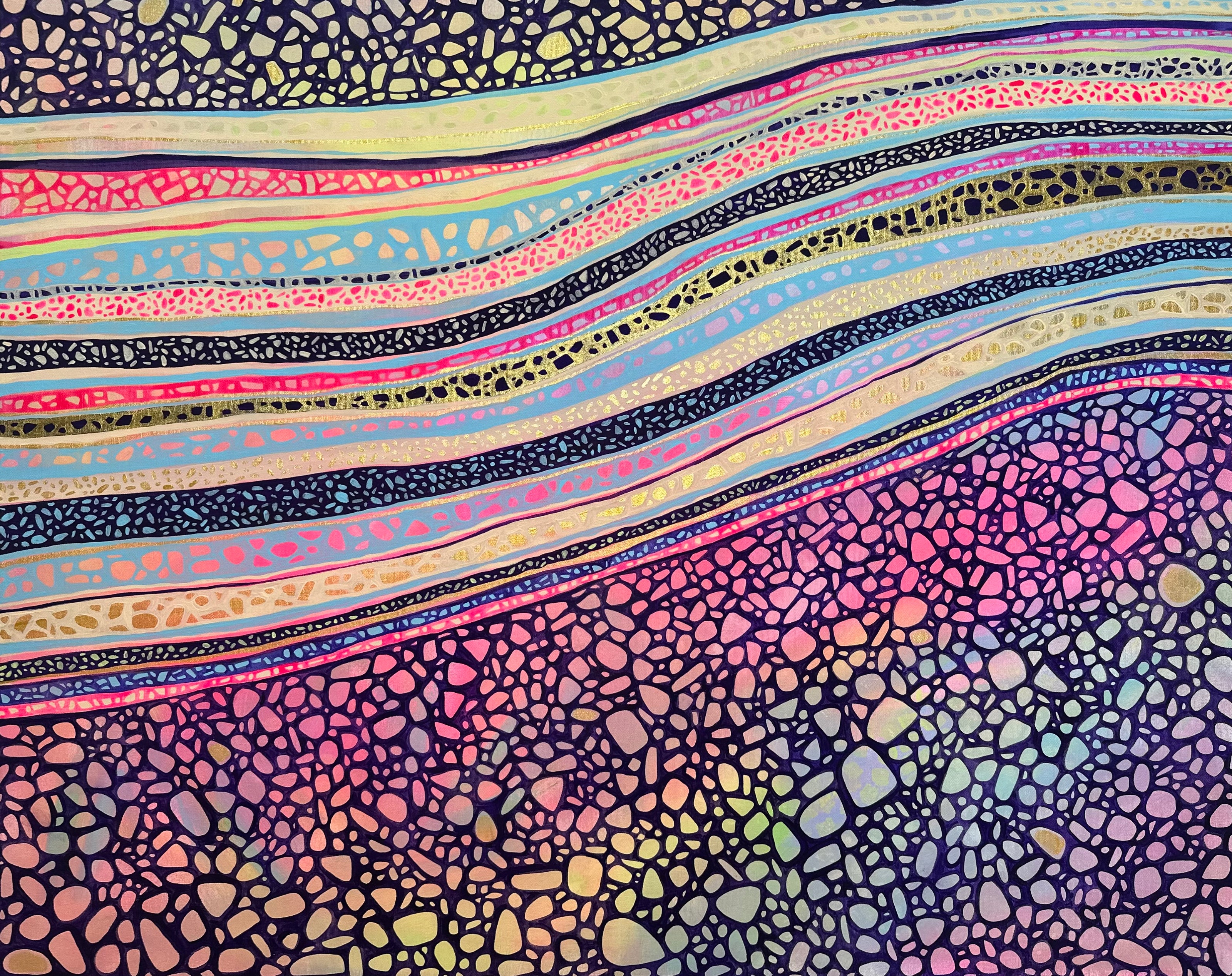 Min konst kommer från en plats av inre lugn. Jag finner frid i upprepade mönster och olika texturer. De uppstår utan planering, helt intuitivt. Det finns en rytm i upprepningen som jordar mig, och i den enkelheten finner jag skönhet. Varje verk är en resa - en utforskning av passion och en koppling till de djupare delarna av mig själv.