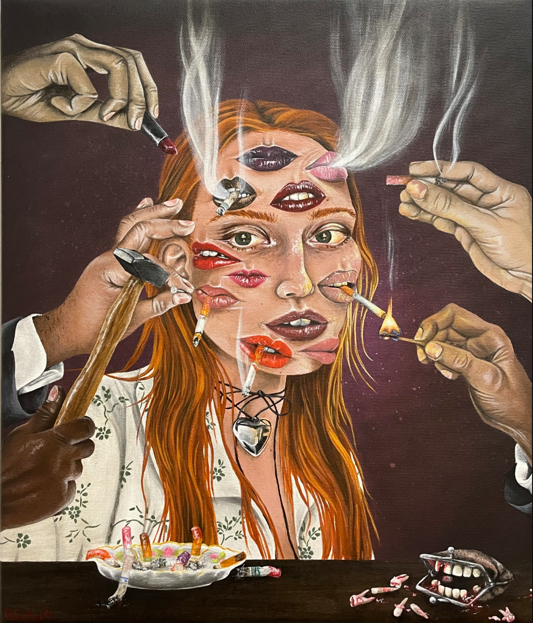 Möt Beatrice Scholl, en konstnär från Östergötland som befinner sig på västkusten. Med inspirationer från dadaismen och surrealismen skapar hon detaljrika verk. Det som en del finner motbjudande försöker Beatrice göra till något fint i sin konst, som resulterar i lekfulla motiv som välkomnar det obekväma. Majoriteten av Beatrice konst skapas på duk med akrylfärg, men under en tvåårig utbildning på en konst-och designskola fick hon möjlighet att utforska keramiken och skapar nuförtiden även tredimensionella verk med sitt konstnärliga ID. I sin hörna på Cay Collective hoppas hon nå ut till fler, och att hon kan fortsätta skapa drömlik konst som är kul för henne att skapa och för andra att titta på. Hoppas ni hittar något intressant!