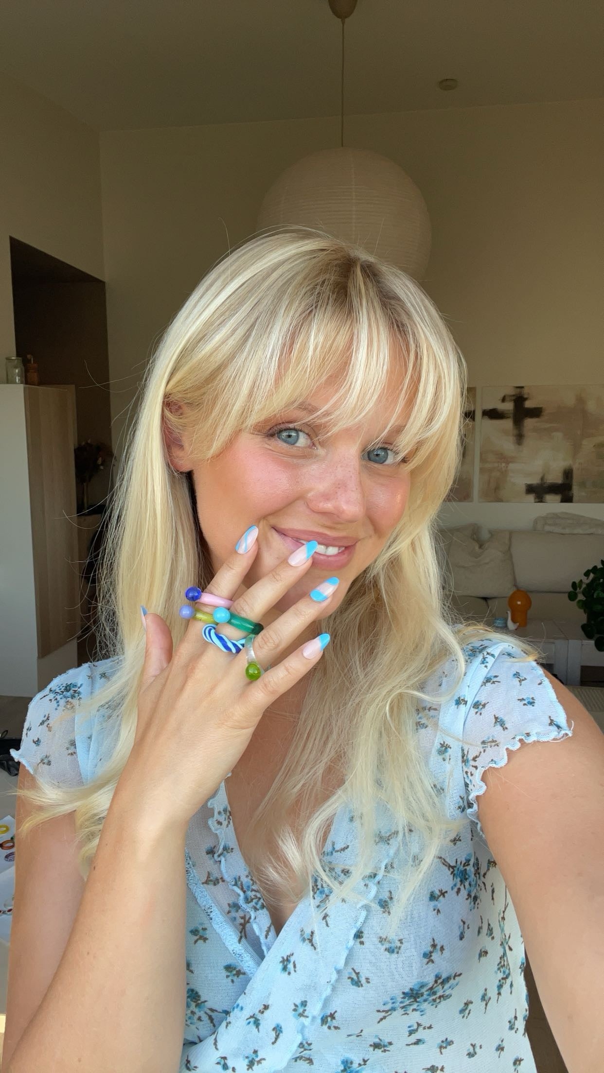 Tanken på att göra smycken av glas var spontan, och innan jag visste ordet av hade det ockuperat hela mina föräldrars garage. Mitt arbete är en ständig process av att leka med färger, former och att tänja på gränserna för att tillverka med ett så unikt material som glas.