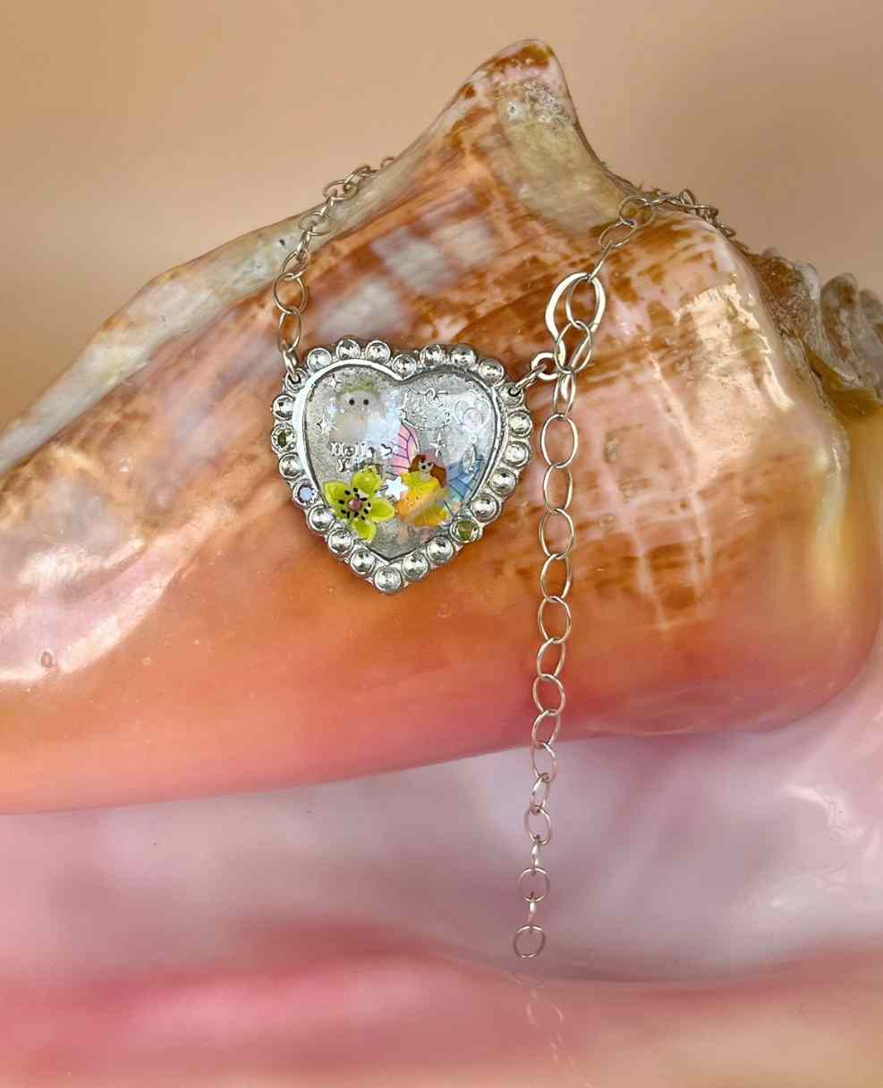 Hon kombinerar oväntade material som gamla DVD-skivor, återvunna tennsoldater och klistermärken med äkta 925 silver och ädelstenar, vilket skapar unika smycken som var och en bär på sin egen historia. Handgjorda med kärlek för alla som vill känna sig som huvudpersonen i sin egen film.