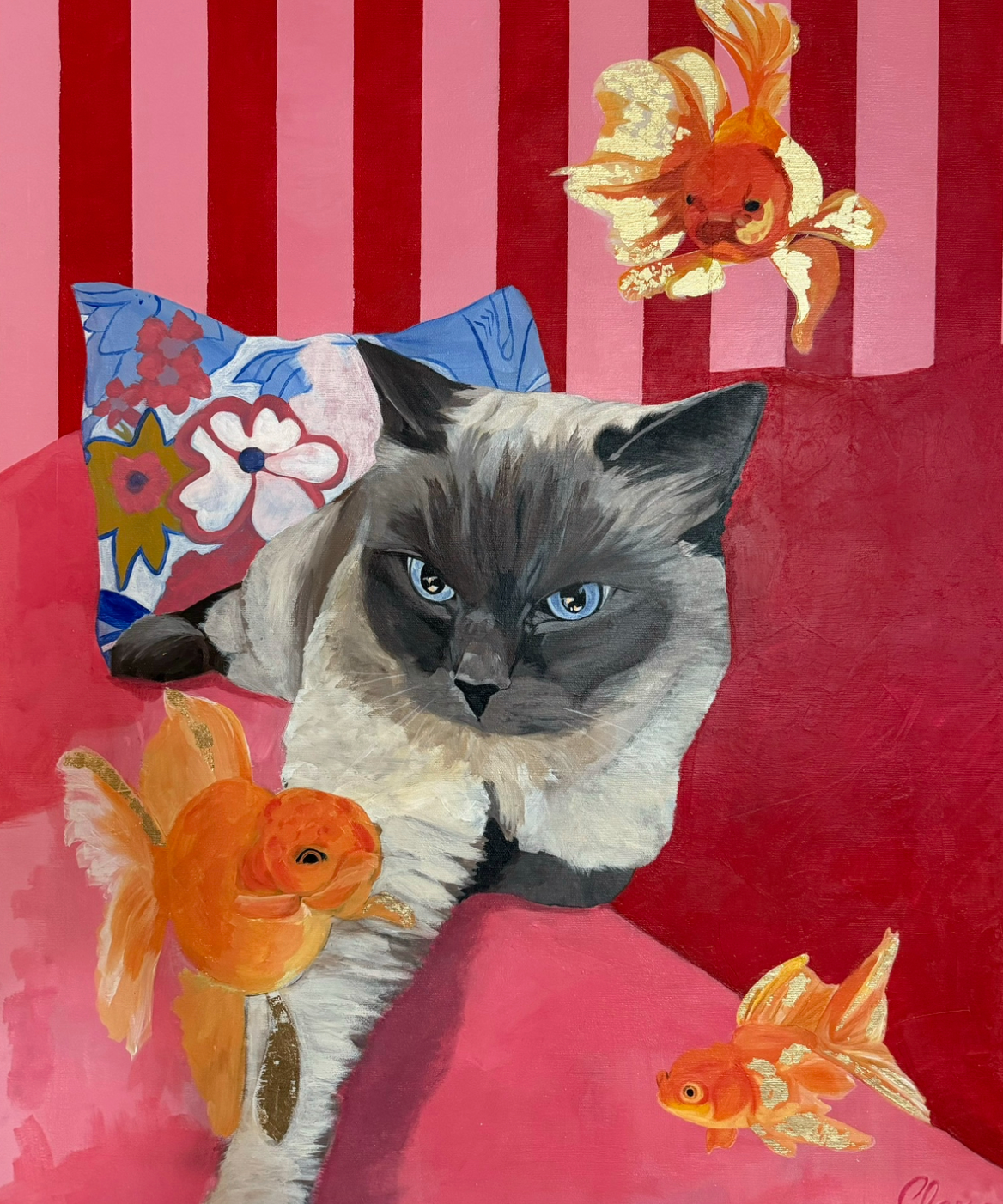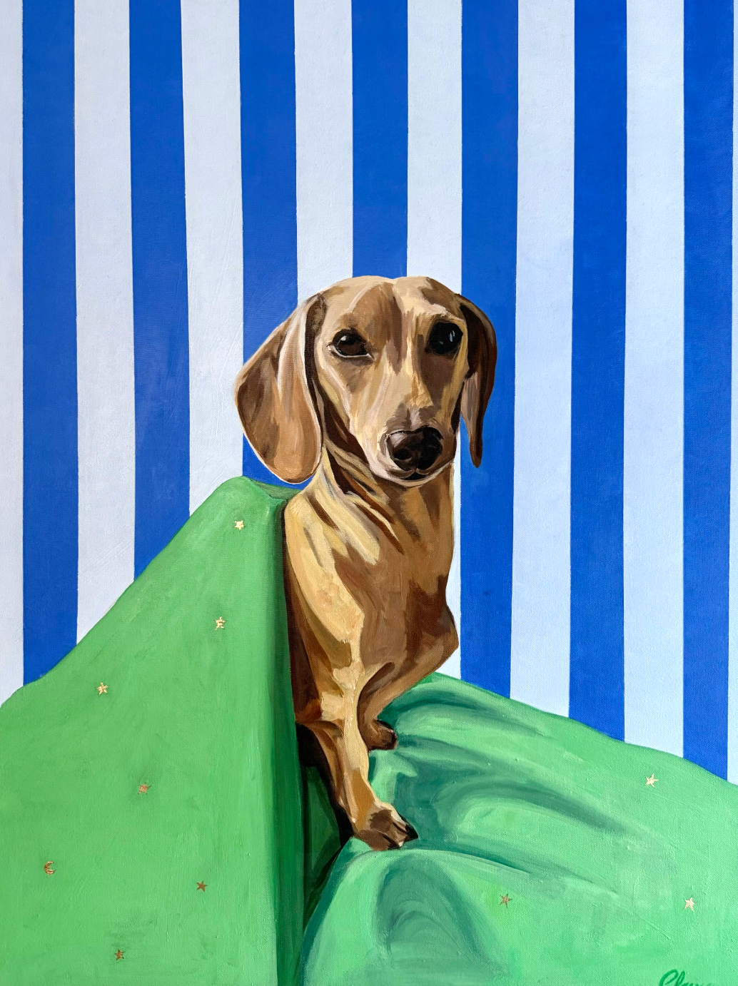 I create vibrant acrylic portraits of beloved pets, often set against striped or custom backgrounds. My work blends bold color with thoughtful design, ensuring each piece feels personal and enhances the space it lives in. Many originals are also available as prints to bring joy and color to more homes. Color psychology inspires me deeply. I see color as a life hack—to spark emotions, encourage presence, and help people live more fulfilling lives. My concept of “dopamine décor” is about bringing vivid beauty into real-world spaces as an antidote to digital overload. I’ve painted since childhood, holding my first vernissage at eight. After earning an engineering degree to “prove” myself, I’ve returned to art with confidence and intention. Inspired by bold women in my life, I create to uplift others and transform environments into spaces of joy, energy, and meaning.