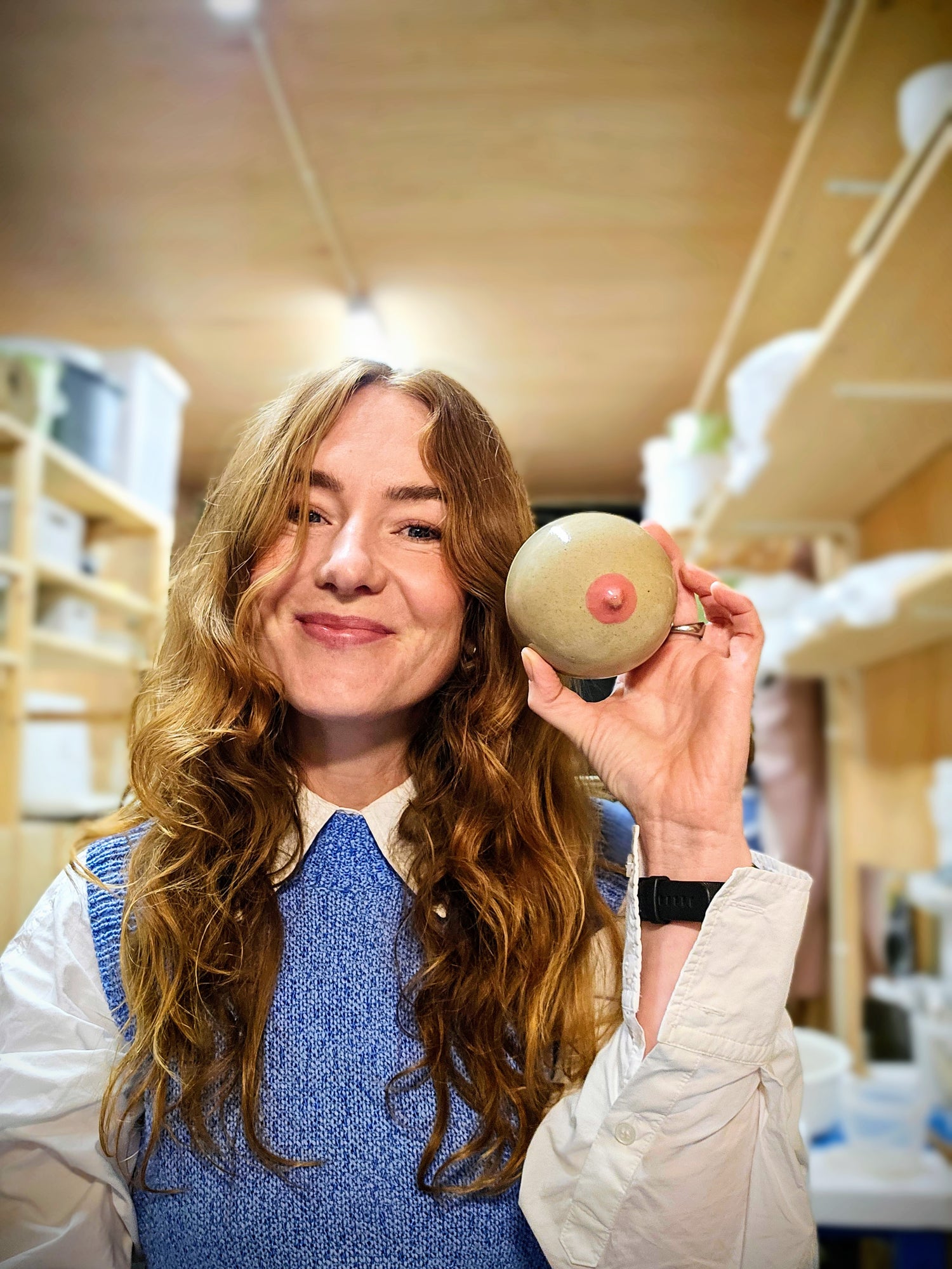 Jag är en keramiker vars verk kretsar kring handdrejade bröst, skapade för att hylla kvinnors skönhet. Inspirerad av livet i all dess råhet. Min keramik syftar till att väcka konversation, framkalla känslor och hedra de mångsidiga former som gör oss mänskliga.