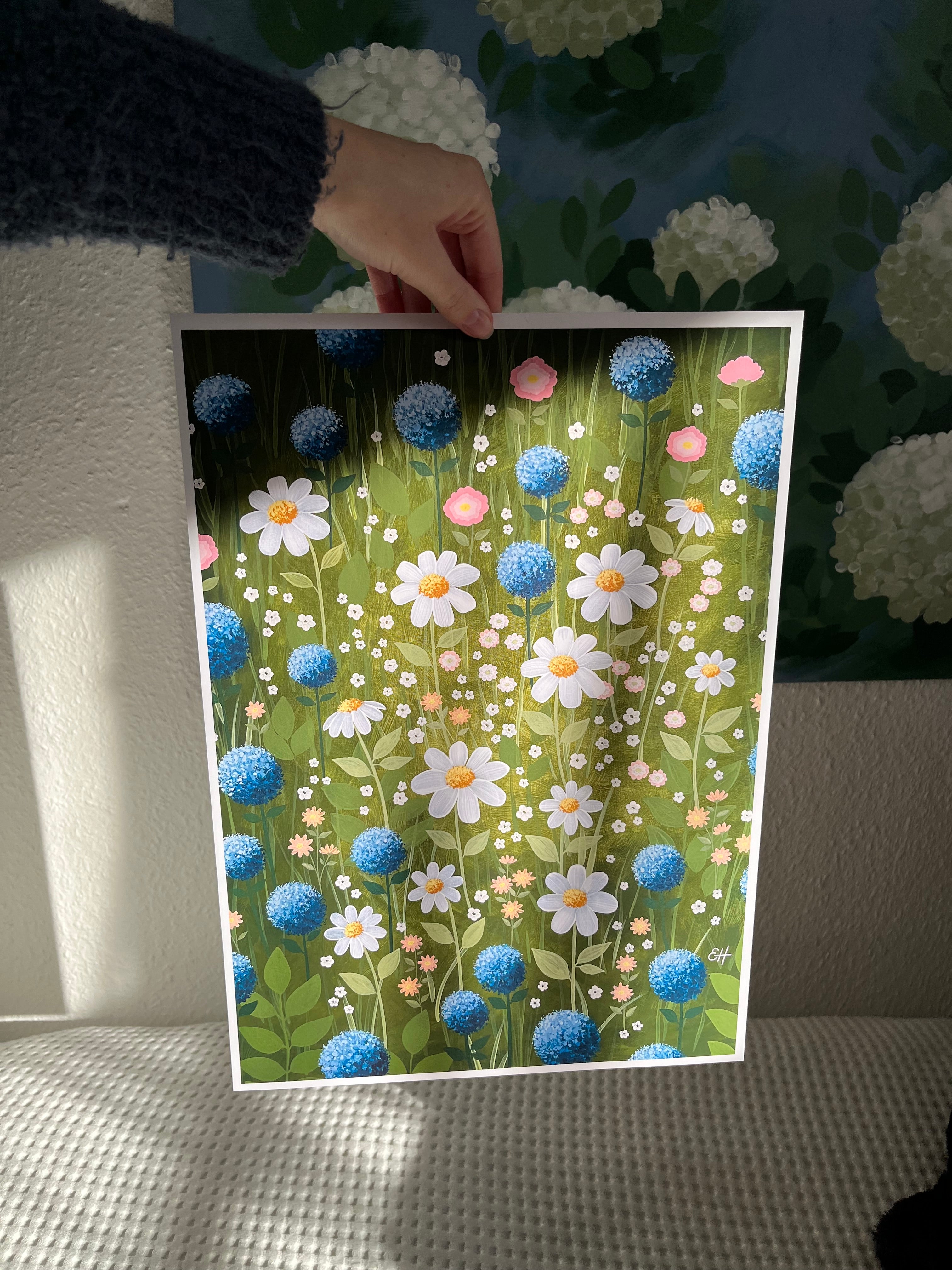 Min största inspiration när jag målar är blommor och hus. Två väldigt olika motiv, fast som ändå fungerar så bra tillsammans. När jag målar hus har jag fullt fokus och ett starkt öga för detaljer. Jag älskar att se hur linjer och penseldrag sakta bygger upp ett hus på pappret. För mig är detaljerna på huset viktigt och de bidrar till att fånga hela känslan av huset. När jag målar blommor däremot så har jag en mer avslappnad stil där jag låter penseln jobba mer fritt. Ibland har jag ingen plan, jag låter penseldragen visa mig vägen för hur målningen kommer se ut. Blommor ger mig så mycket glädje, både att måla och att kolla på. Så ett hem fyllt med blommor på väggarna är ett måste.