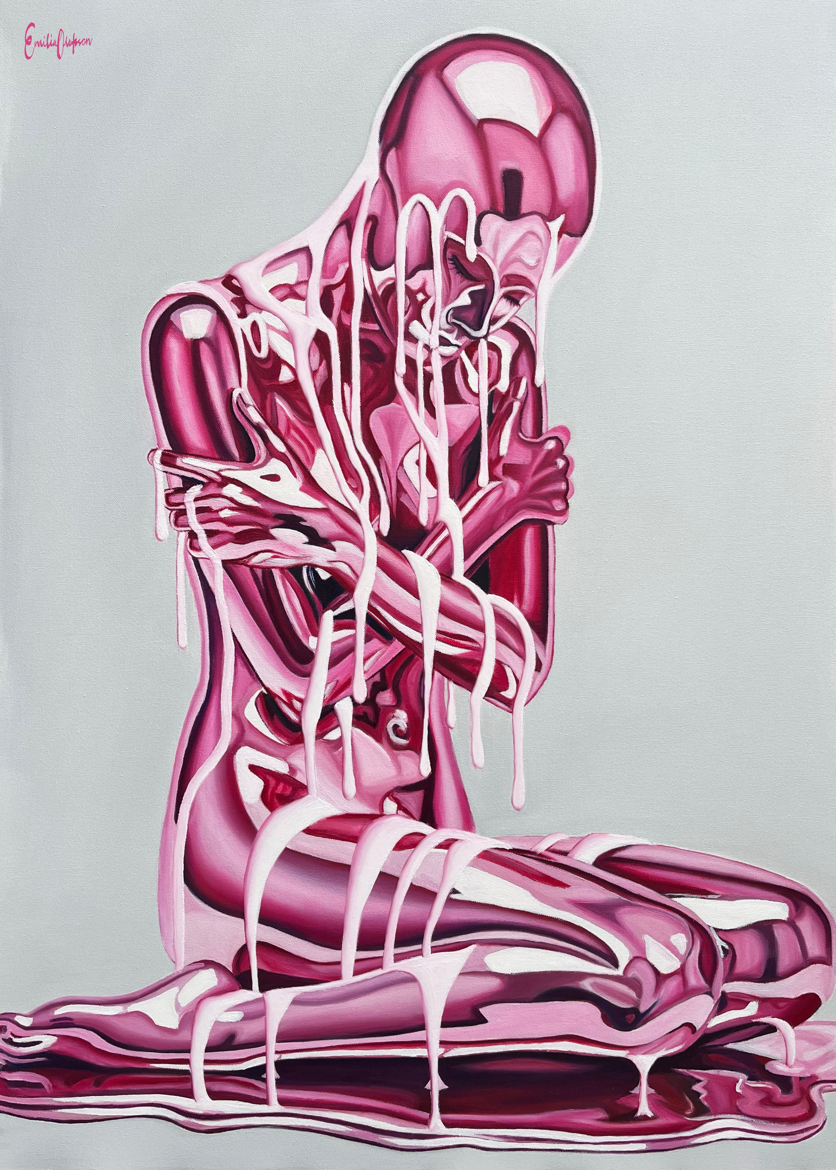 Mitt namn är Emilia och jag är en konstnär från Trollhättan. Ända sedan barnsben har konsten varit min ständiga följeslagare. Men det var i oktober 2023, med ett startkit färger och penslar från min mormor, som jag ofta började måla på duk.