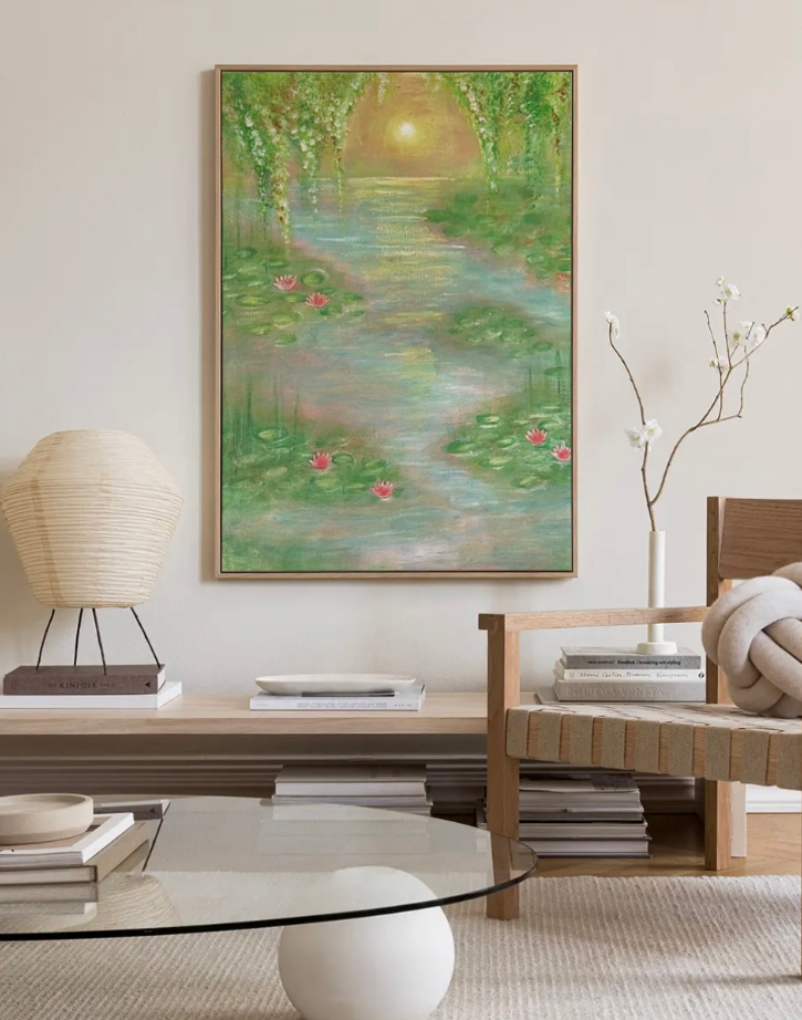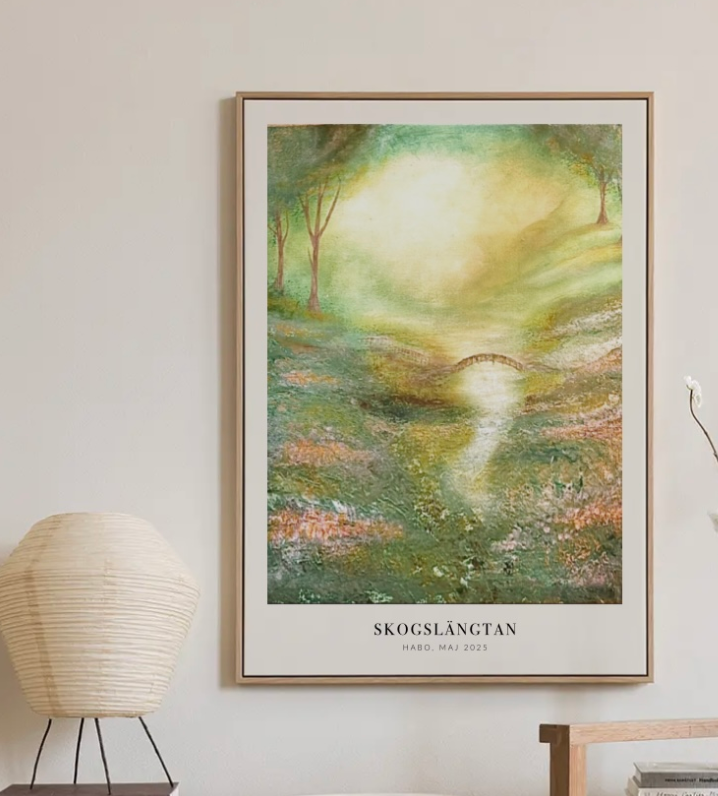 Hej, jag heter Frida! Jag är en 20-årig tjej som bor nära Jönköping. Jag känner mig hemma i ateljén och har på senare år börjat ta mitt måleri mer seriöst. Jag målar semi-abstrakta målningar och gör även affischer. Mina målningar är inspirerade av den svenska skogen och landskapet, jag vill att min konst ska ge en lugn känsla och harmoni. Mina målningar har en drömliknande känsla som får mig att vilja leva i dem. Min största inspiration är Claude Monet, hans stil återspeglas ofta i mina målningar, till exempel i min mest populära målning "Liljor" med näckrosor. Även i min målning "Skogslängtan" med de abstrakta blommorna. Hoppas att du kommer att gilla min konst!