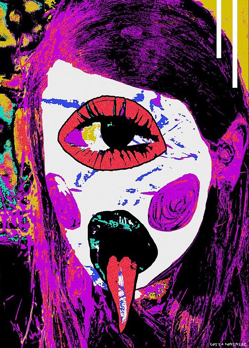 Mitt namn är Gosia och jag är en 24-årig grafiker från Polen. Jag skapar digitala konstverk i Photoshop – livfulla collage byggda genom lager, filter och texturspel. Mitt arbete kretsar kring mänskliga figurer, särskilt kvinnor, porträtterade på surrealistiska, drömlika sätt. Jag strävar efter att framkalla kontrasterande känslor – en blandning av fascination och obehag. Djärva, motstridiga färger är ett signaturmärke för min stil. Jag är djupt inspirerad av surrealism och psykedelisk konst, vilket gör att jag kan utforska undermedvetna teman och visuella motsägelser. Dessa influenser har format ett unikt konstnärligt språk som känns personligt och instinktivt. För mig är konst mer än estetik – det är ett verktyg för känslomässigt uttryck och introspektion. Genom mina skapelser bjuder jag in betraktaren att engagera sig i okända känslor och se skönhet genom en mer komplex, ibland oroande lins.
