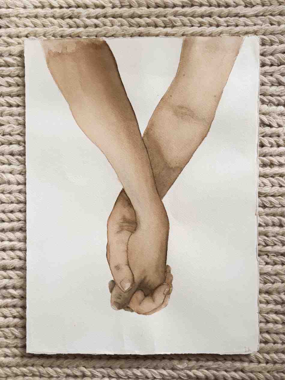 Mitt arbete kombinerar fotografi, akvarell och poesi, allt grundat i personlig erfarenhet. Mina akvarellmålningar är inspirerade av människor nära mig, ofta med fokus på händer, ibland mina egna, ibland mina föräldrars som ett sätt att visa samhörighet och minnen.