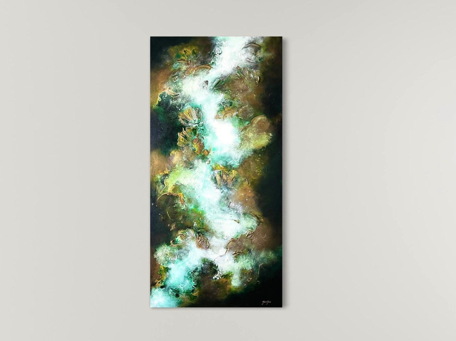 I am Johanna Joona, an artist and film editor based in Stockholm, Sweden. My acrylic paintings are built up through many layers of paint and texture paste, creating depth, movement, and subtle 3D effects.