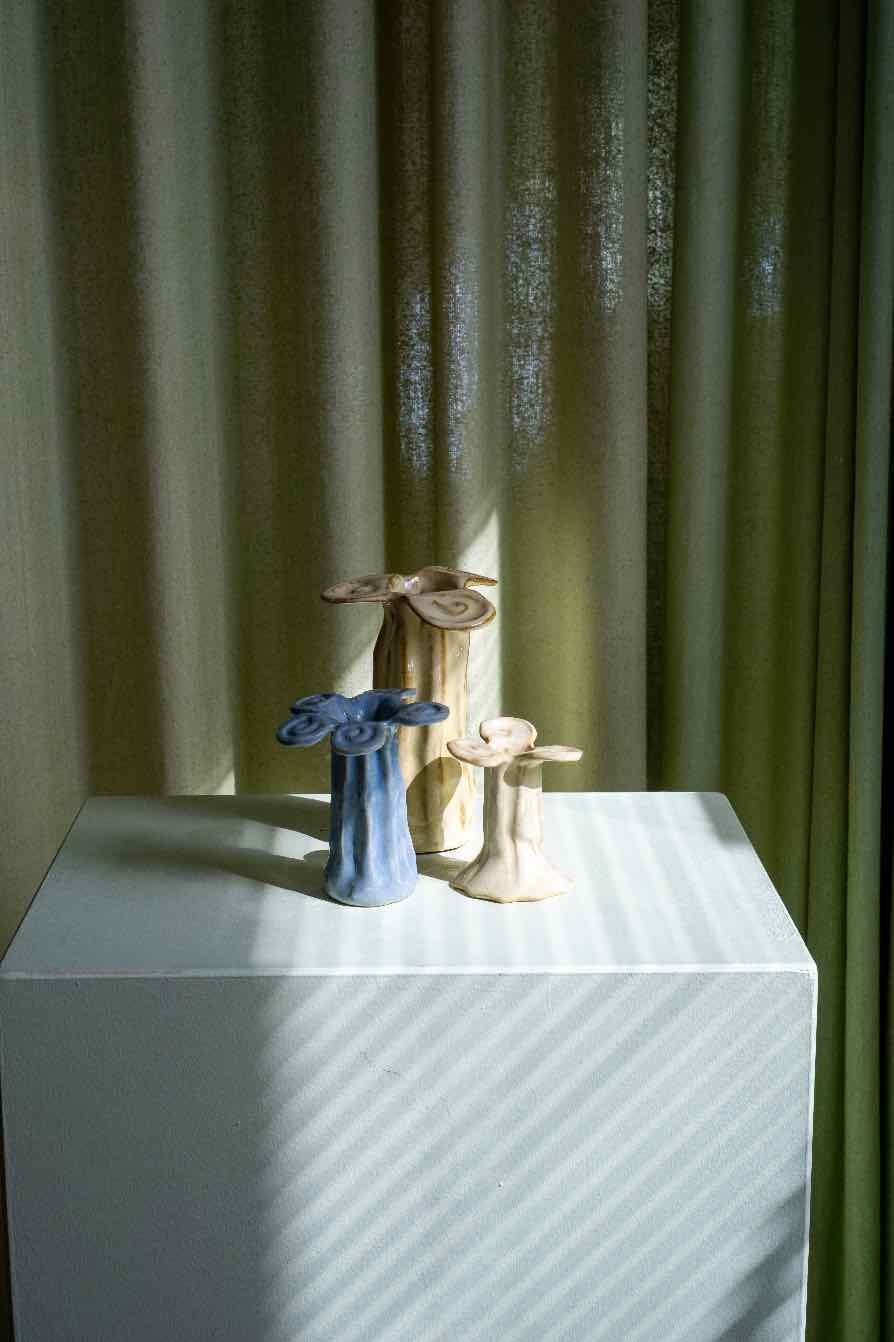 Alla föremål är handgjorda av konstnären Charlotta Munsterhjelm i min Helsinki studio. Mycket av min inspiration kommer från vardagslivet, från barnteckningar, den nordiska estetiken och lyckliga misstag.