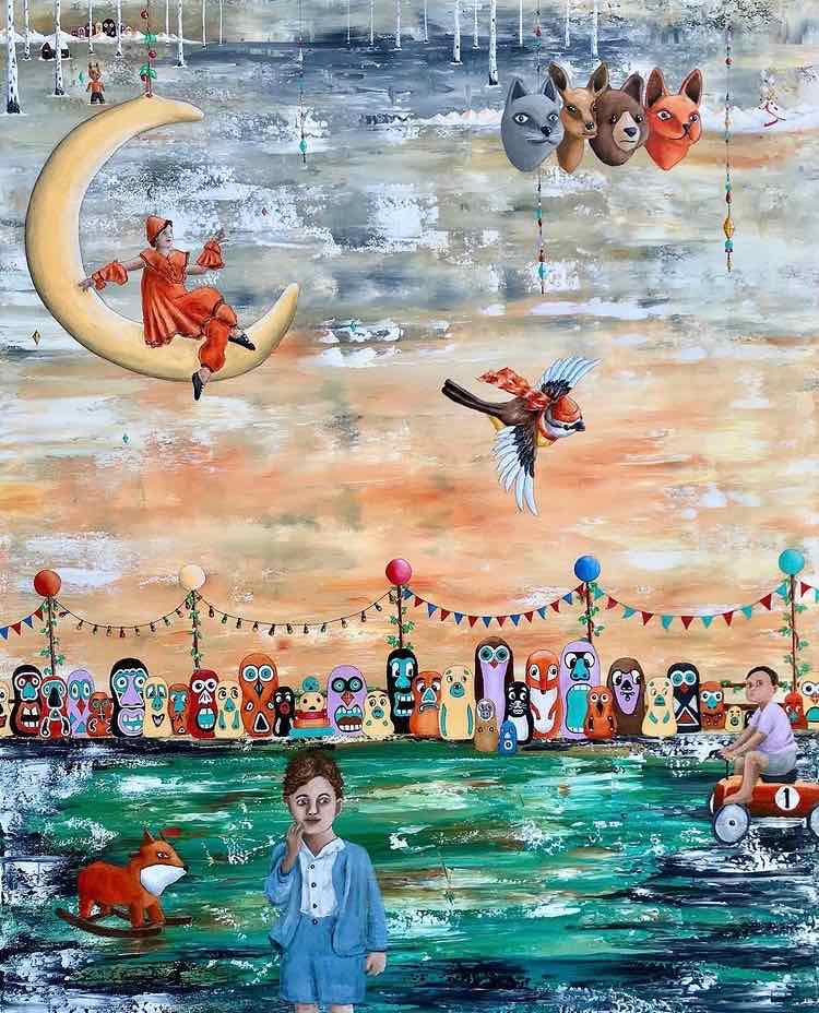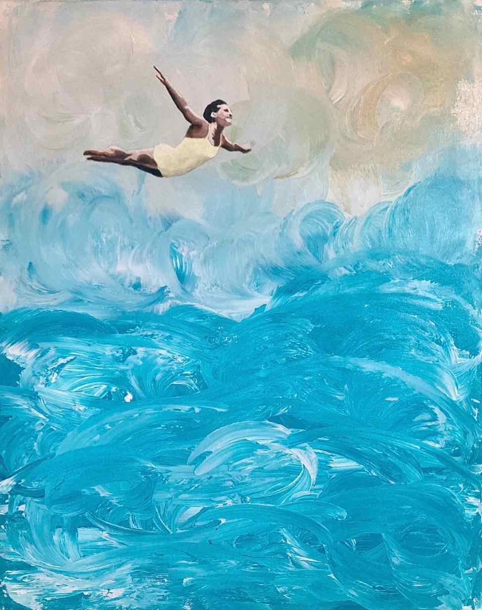 Jag regisserar mina målningar som teater, där ett specifikt ögonblick i tiden fångas.