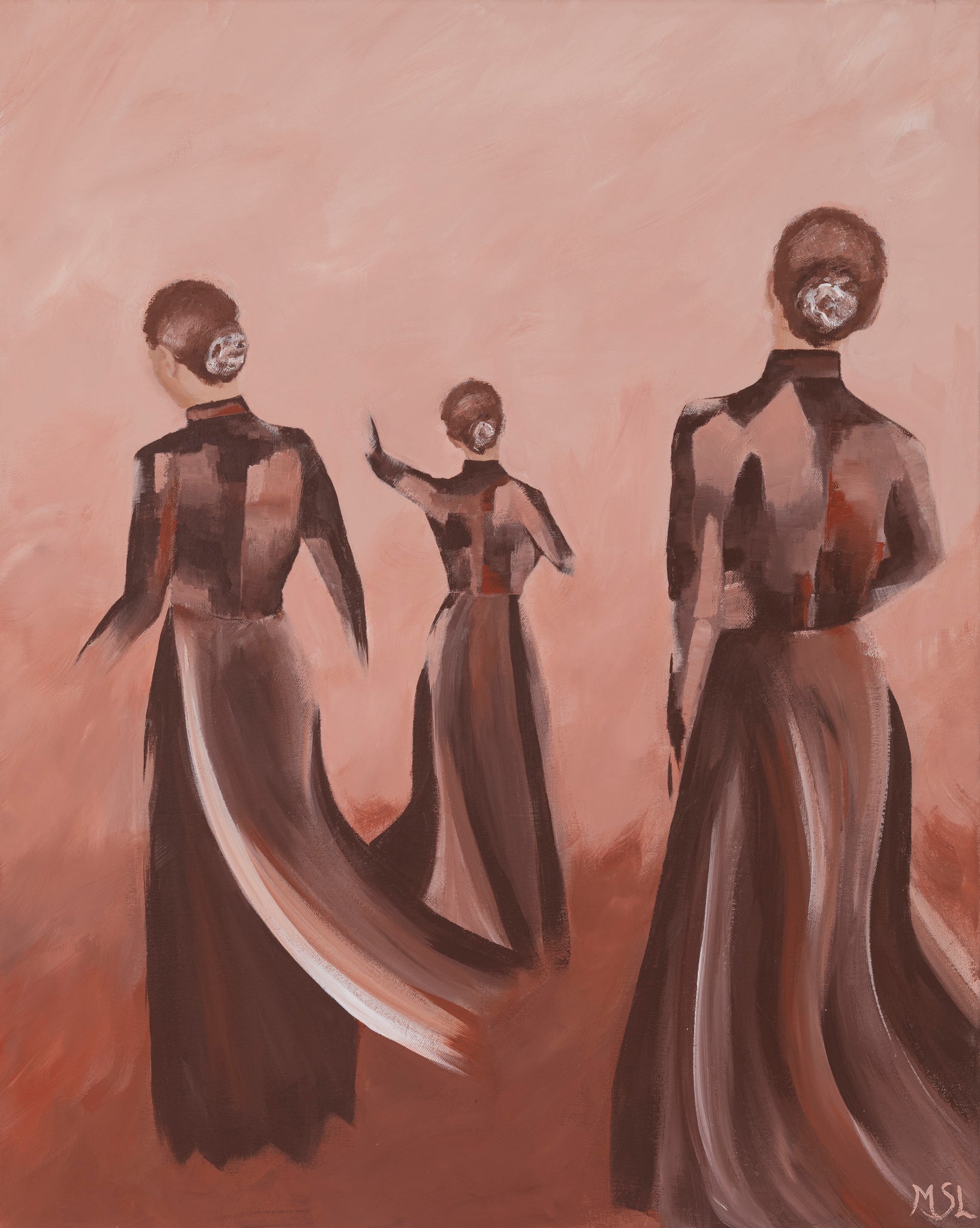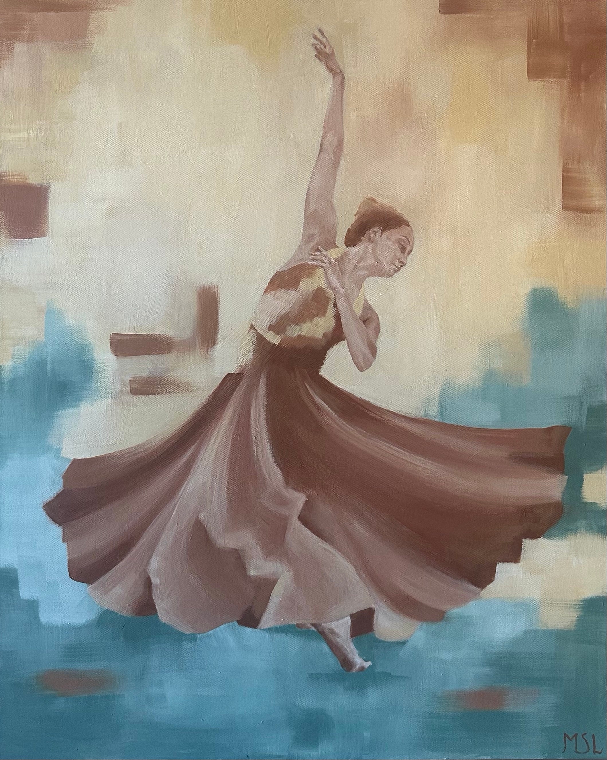 Min bakgrund som dansare, koreograf och danslärare har djupt påverkat mitt konstnärliga arbete. Rörelse och kroppens språk är en ständig närvaro i mina målningar.
