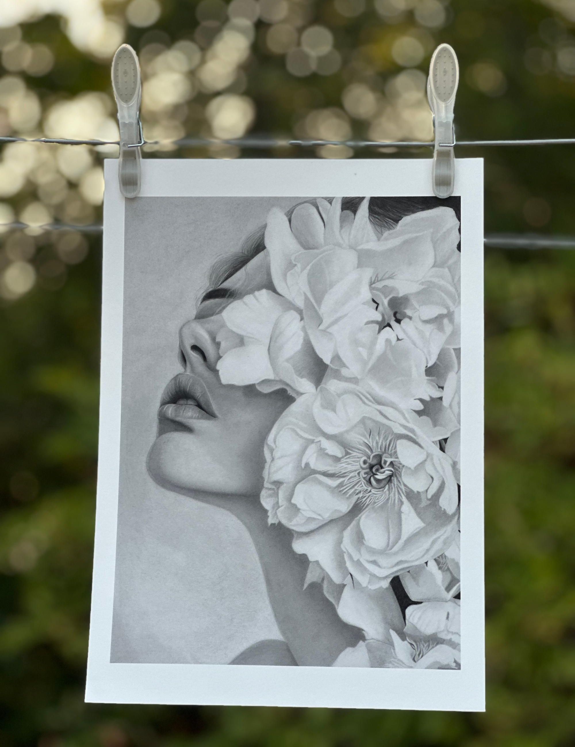 Hi! I’m Mégane, a French artist. I fell back in love with drawing during my years in Montréal, especially in the stillness of the pandemic. I work mostly with charcoal and graphite, and I create tender, romantic pieces simply because I love love. Each drawing takes me hours, sometimes days, and I pour a lot of myself into them. My work is about emotions, human fragility, and that quiet space between strength and vulnerability. I try to capture small, intimate moments and invite you to pause with me, like taking a deep breath. My hope is to create art that feels honest, soft, and timeless, using traditional techniques but always with a fresh perspective.