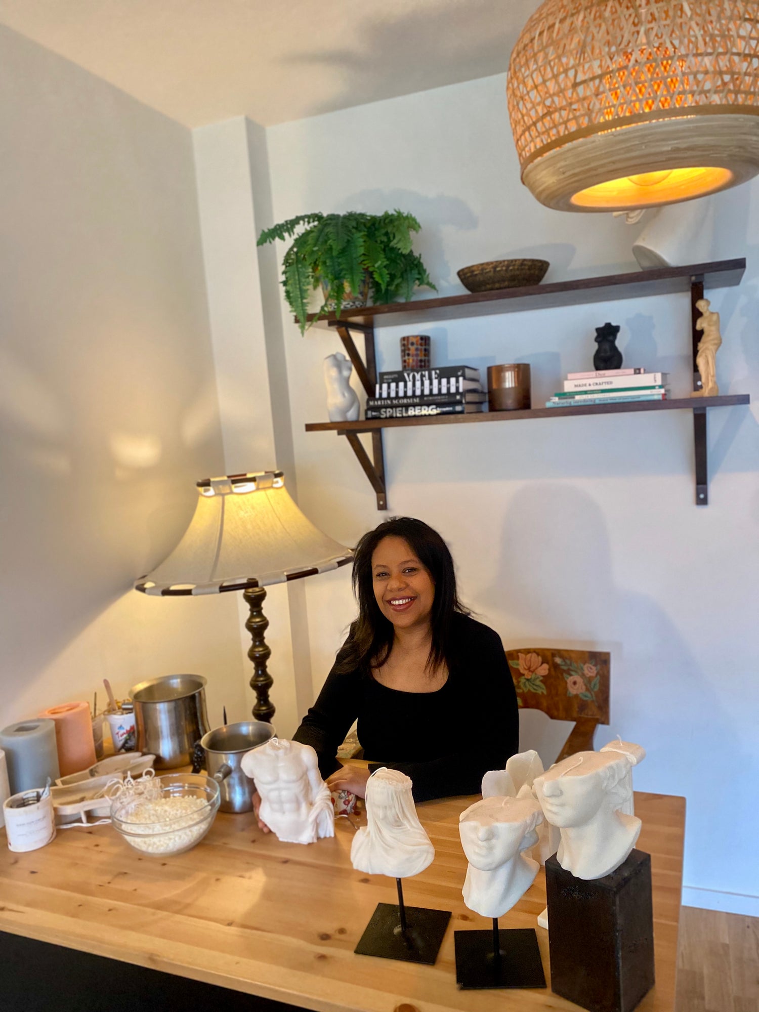 Idéen till att skapa ljus började när jag blev mamma. Jag älskar att tända ljus hemma och ville ha miljövänliga och paraffinfria ljus i mitt hem med barn. Jag var föräldraledig och började skapa egna hållbara produkter och fick samtidigt utlopp för min kreativitet. Mina ljus är perfekta för dig som investerar i hållbara, högkvalitativa produkter och vill ha en minimalistisk konstnärlig design.
