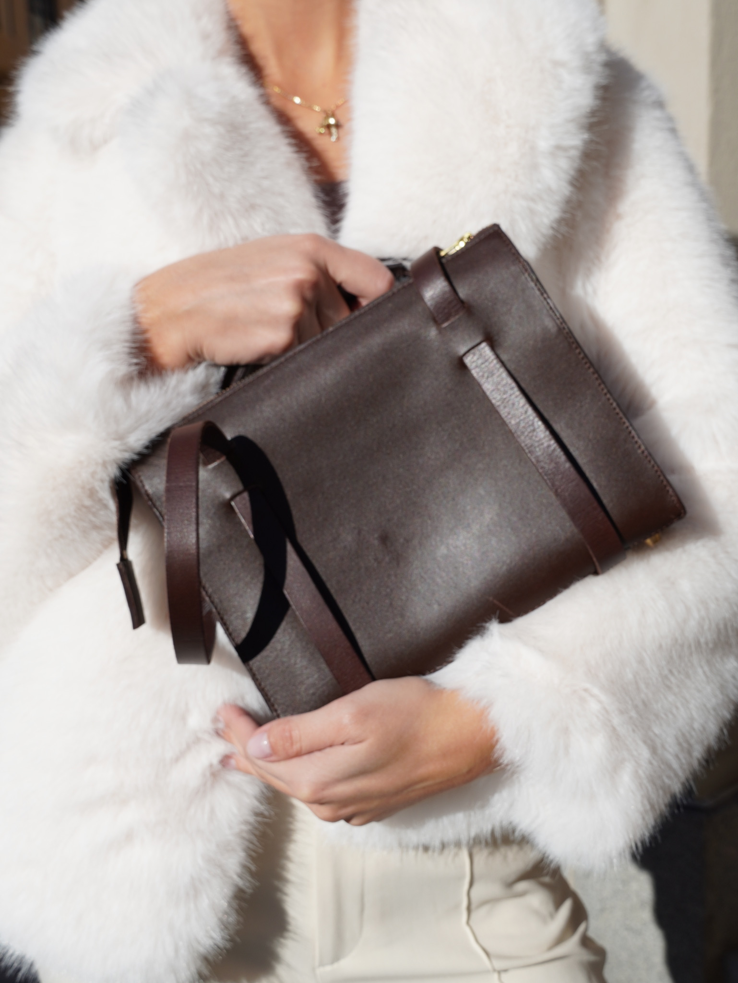 Alla väskor designas och prototypas i studion i familjehemmet, och tillverkas slutligen för hand av ett litet familjeföretag i Portugal – vilket säkerställer kontroll över varje steg i produktionen, materialen och etiken.
