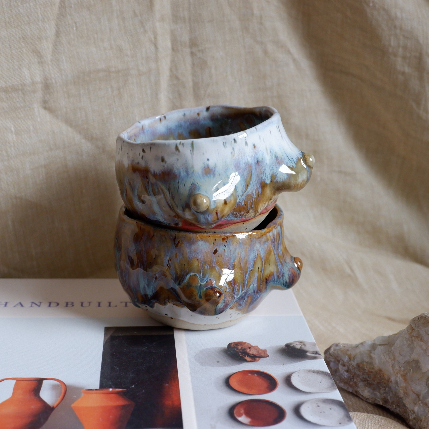 Martina är en keramiker baserad i Göteborg, Sverige, som skapar handskulpterade muggar som hyllar naturliga former, femininitet och vardagliga ritualer. Hon arbetar med stengods och använder endast nyp- och spiraltekniker, så varje verk är unikt och bär spår av hennes händer. Hennes arbete är inspirerat av naturen, slow living och skönheten i ofullkomlighet. Precis som inga två kvinnor är desamma, är inga två av Martinas feminina muggar likadana. Genom mjuka kurvor och organiska former strävar hon efter att hylla den kvinnliga kroppen och uppmuntra självkärlek och självförtroende. Oavsett om det är en lugn morgon eller en enkel paus på dagen, är hennes muggar gjorda för att ge värme, närvaro och en känsla av samhörighet.
