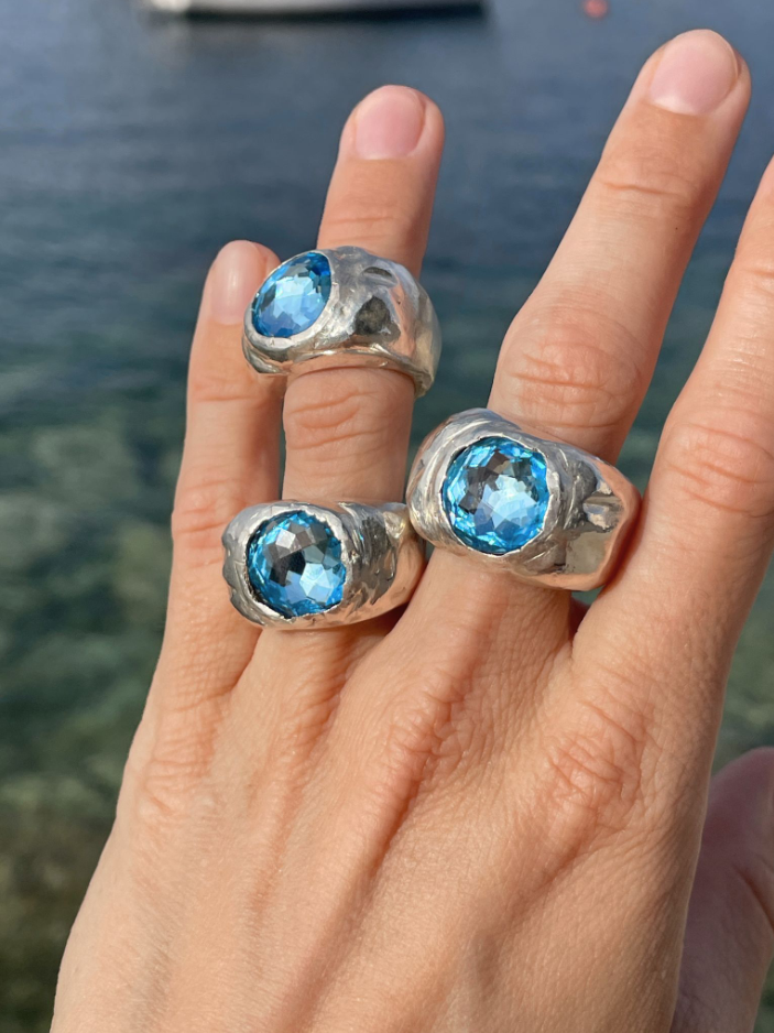 pomme pomme föddes ur ren rastlöshet – ett sätt att lugna otåliga händer och en ännu mer otålig själ. Varje smycke du ser är kärleksfullt handgjort av mig i min lilla verkstad i Stockholm. Jag har inget lager; istället tillverkas varje smycke på beställning, vilket säkerställer att varje skapelse är unik och bär sin egen lilla karaktär. Även om inga två är exakt likadana, delar alla en djärv, klumpig anda. Varje smycke är noggrant tillverkat för hand i återvunnet 925 sterlingsilver, ofta prydt med vackra stenar, och designat för att bevaras livet ut. Jag lägger ner mitt hjärta i varje steg i processen, och jag hoppas att du kommer att älska att bära dessa smycken lika mycket som jag älskade att göra dem åt dig.