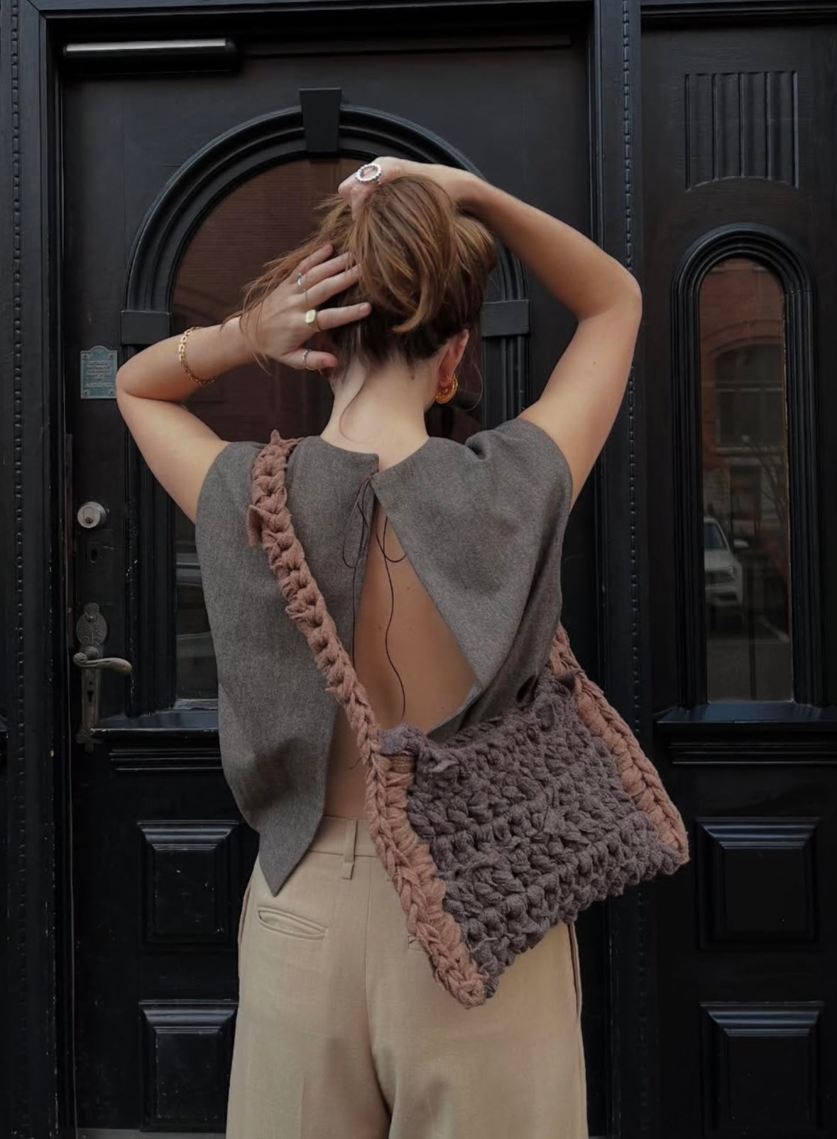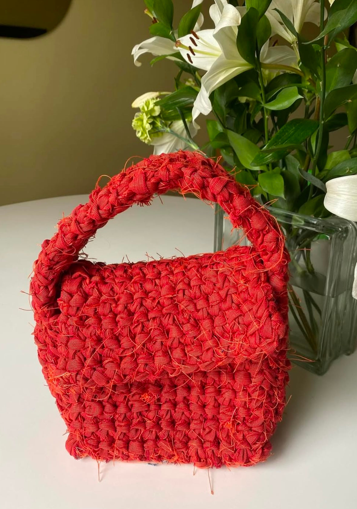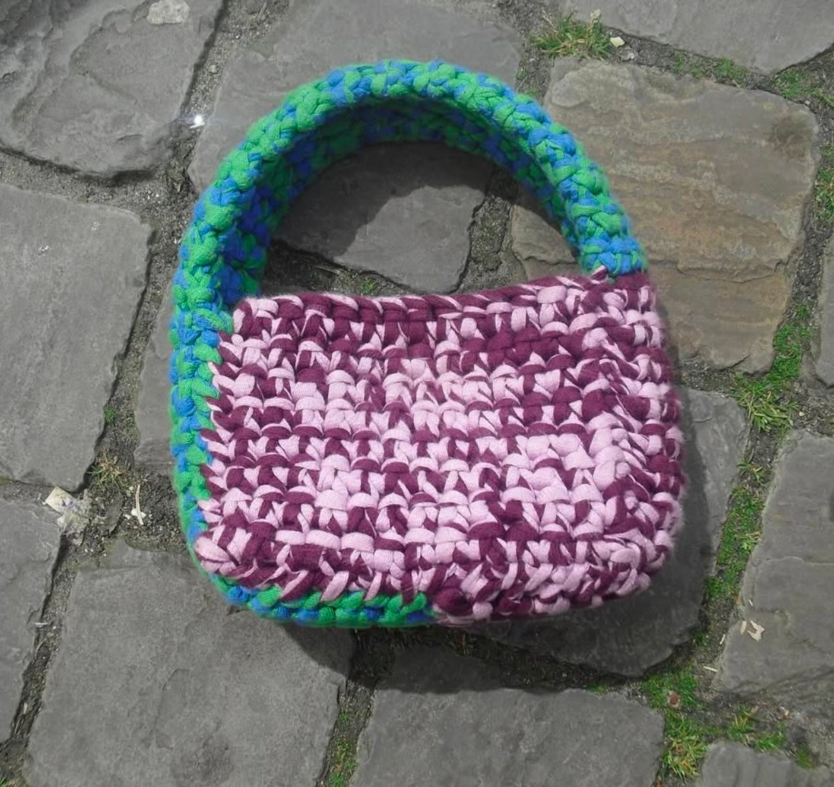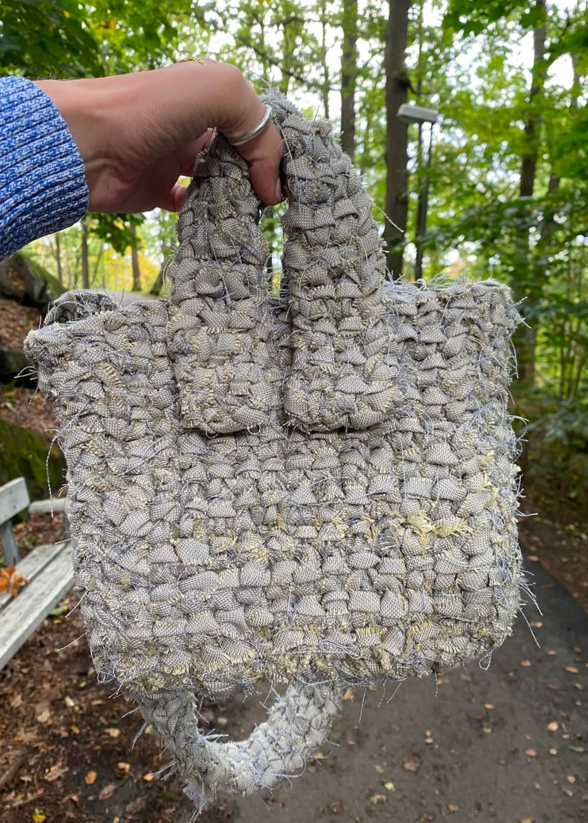 Hej! Jag heter Olivia och skapar virkade handväskor gjorda från upcyclat deadstock tyg under namnet "re.rut". Med mina vänner som inspiration har de olika modellerna fått sina namn från hanna, saga och becky och har alla sina egna personligheter. Varje väska är unik och är gjord från överblivet tyg – antingen från pappas gamla jeans, en matta som aldrig blev av eller sömmerskornas rester.