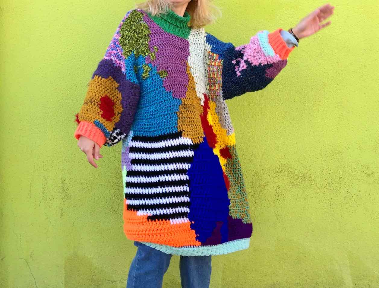 Mitt arbete kretsar kring upcycling. Jag repar upp begagnade stickade plagg och ger garnet ett nytt liv genom mina designs. Varje verk är tillverkat långsamt för hand, med uppmärksamhet på textur, färg, hållbarhet och individualitet.