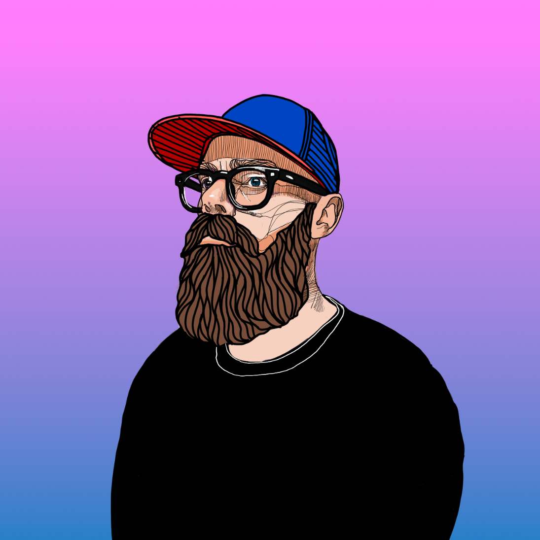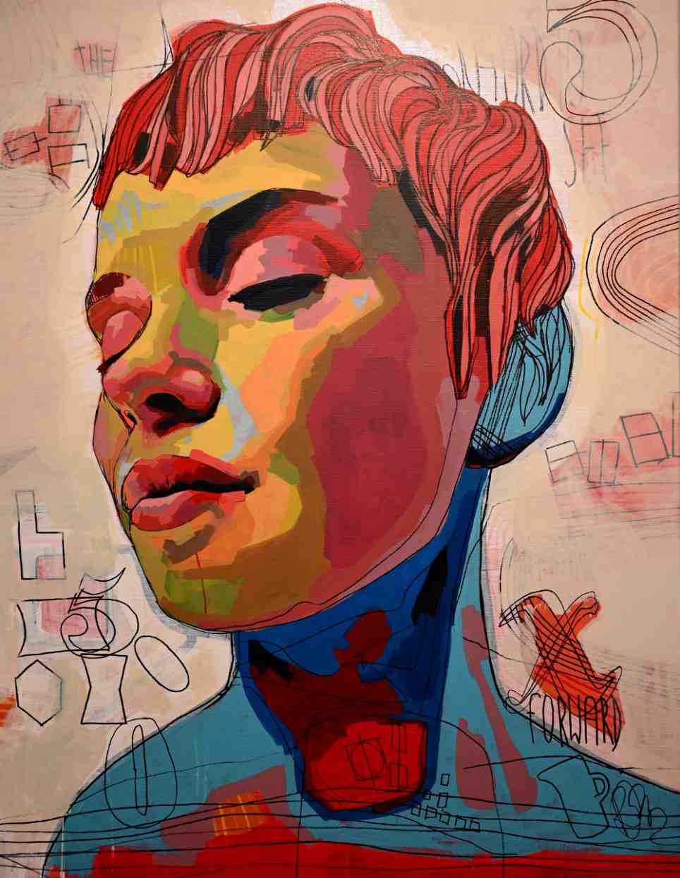 Ansikten är centrala i mitt arbete – inte som avbilder, utan som behållare för stämning, tvivel, motstånd och eftertanke. Jag är intresserad av vad som händer i de ögonblick då jag skapar, energin och resultatet.
