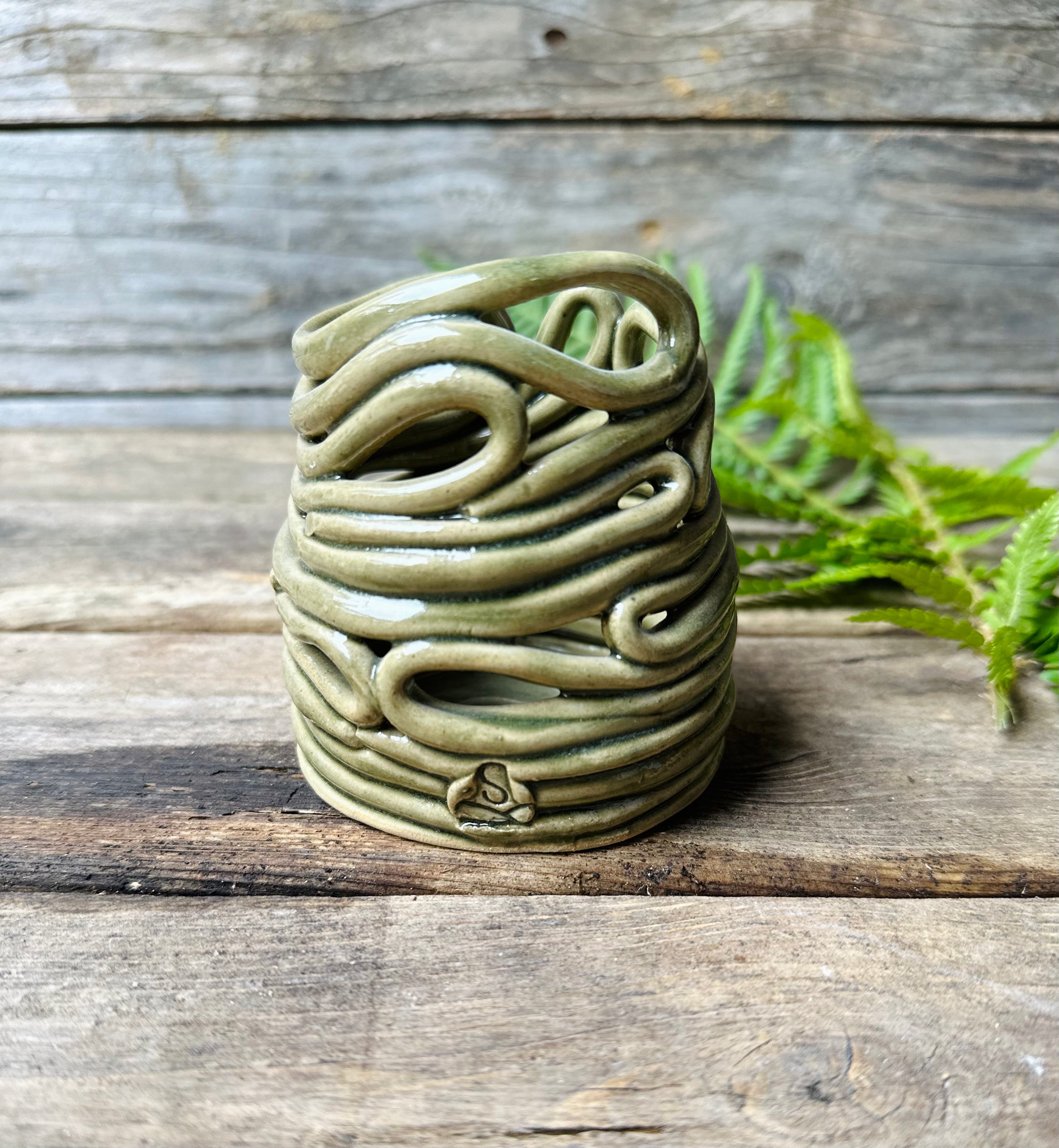 Jag jobbar heltid med keramiken sedan några år och är väldigt glad för det! Har min verkstad hemma i källaren. Mest drejar jag saker du vill använda i köket men ibland blir det lite annat också. Jobbar mest i stengodslera och gillar ett inte alltför putsat uttryck