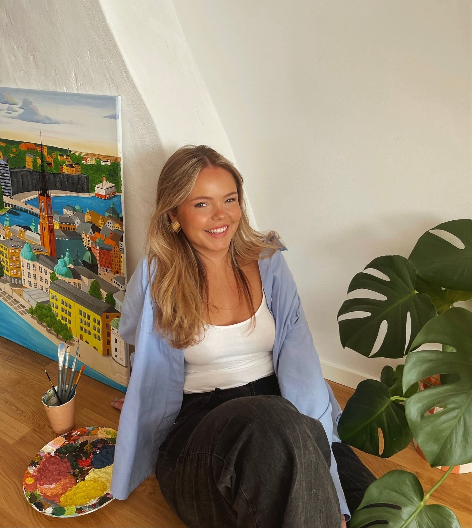 Färgglatt, bubbligt och roligt! Det är så jag skulle beskriva min konststil. Min kärlek till att måla och skapa har alltid funnits med mig, och jag hittar inspiration överallt – i naturen, människor, vardagliga saker och stunder. Mina favoritverk är de som du kan komma tillbaka till gång på gång och fortfarande hitta nya detaljer i som du kanske har missat tidigare.