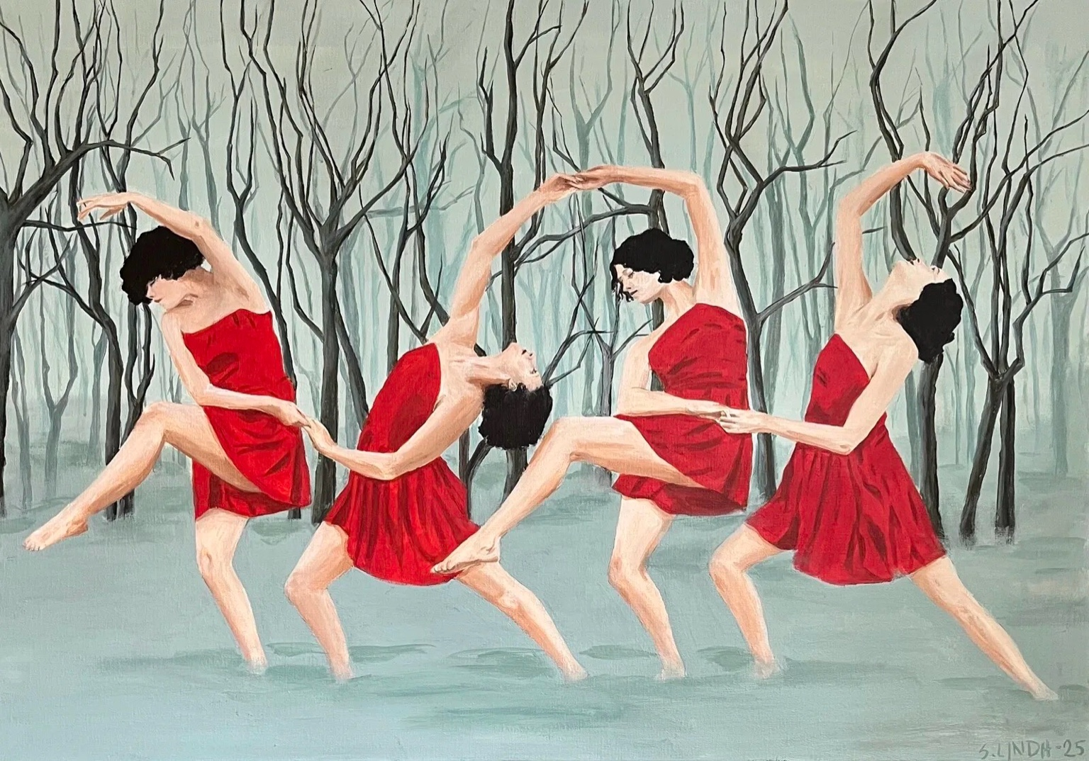 Sara Lindh is an artist, actress, playwright, and singer. Her background in theatre and film shapes her paintings.