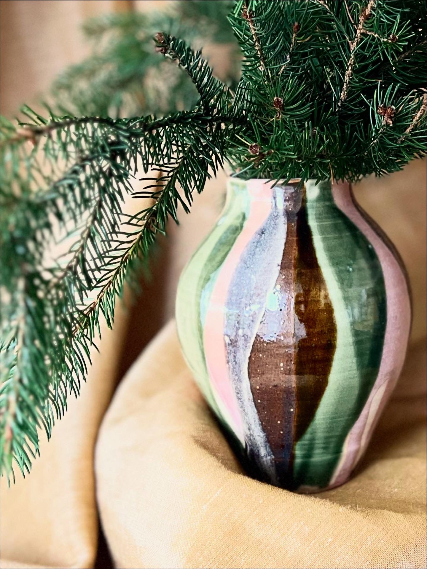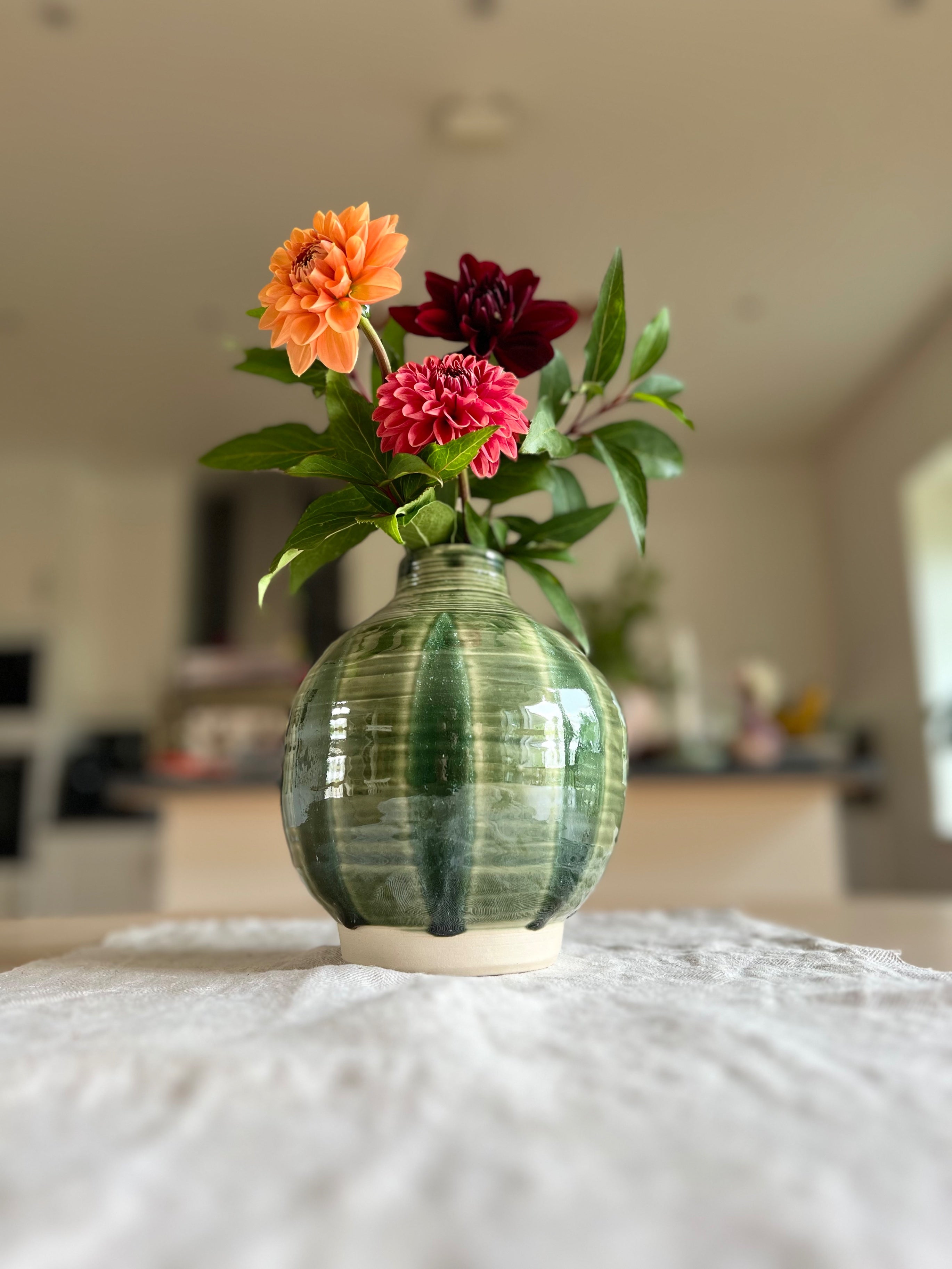 Allt är handdrejat på drejskivan med stengodslera. Stengods är mycket hållbart, vilket innebär att din vas är gjord för att hålla i generationer.