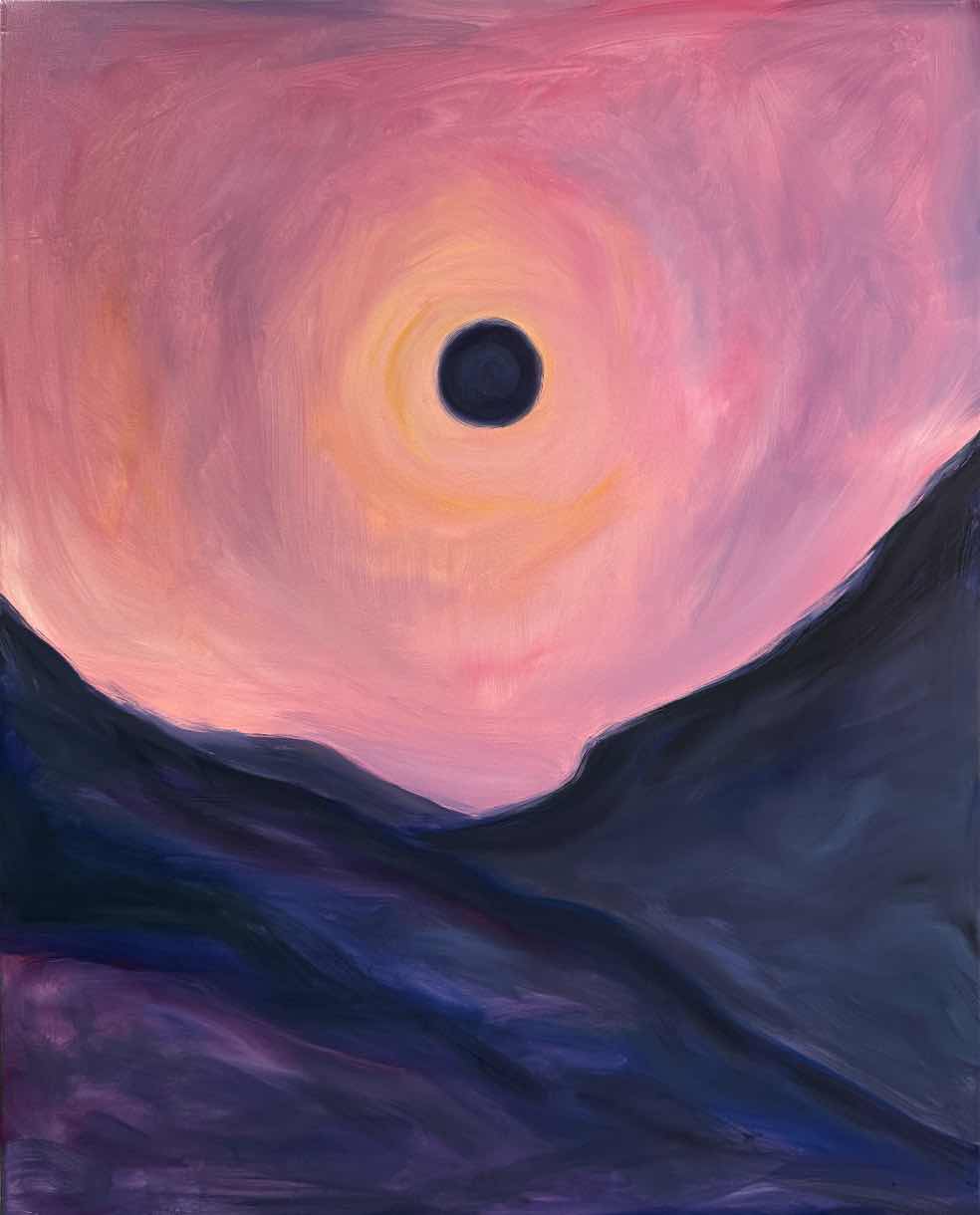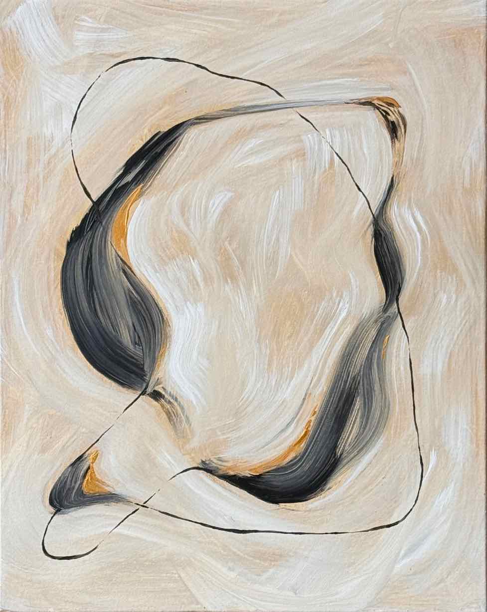 Genom att arbeta med abstraktion, surrealism och expressionism dras jag till utrymmet mellan det som ses och det som känns – en plats för längtan, transformation och reflektion. Återkommande symboler som spiraler, silhuetter, snäckskal och himmelska former förekommer ofta i mitt arbete, vilket antyder cykler, ursprung och inre resor.