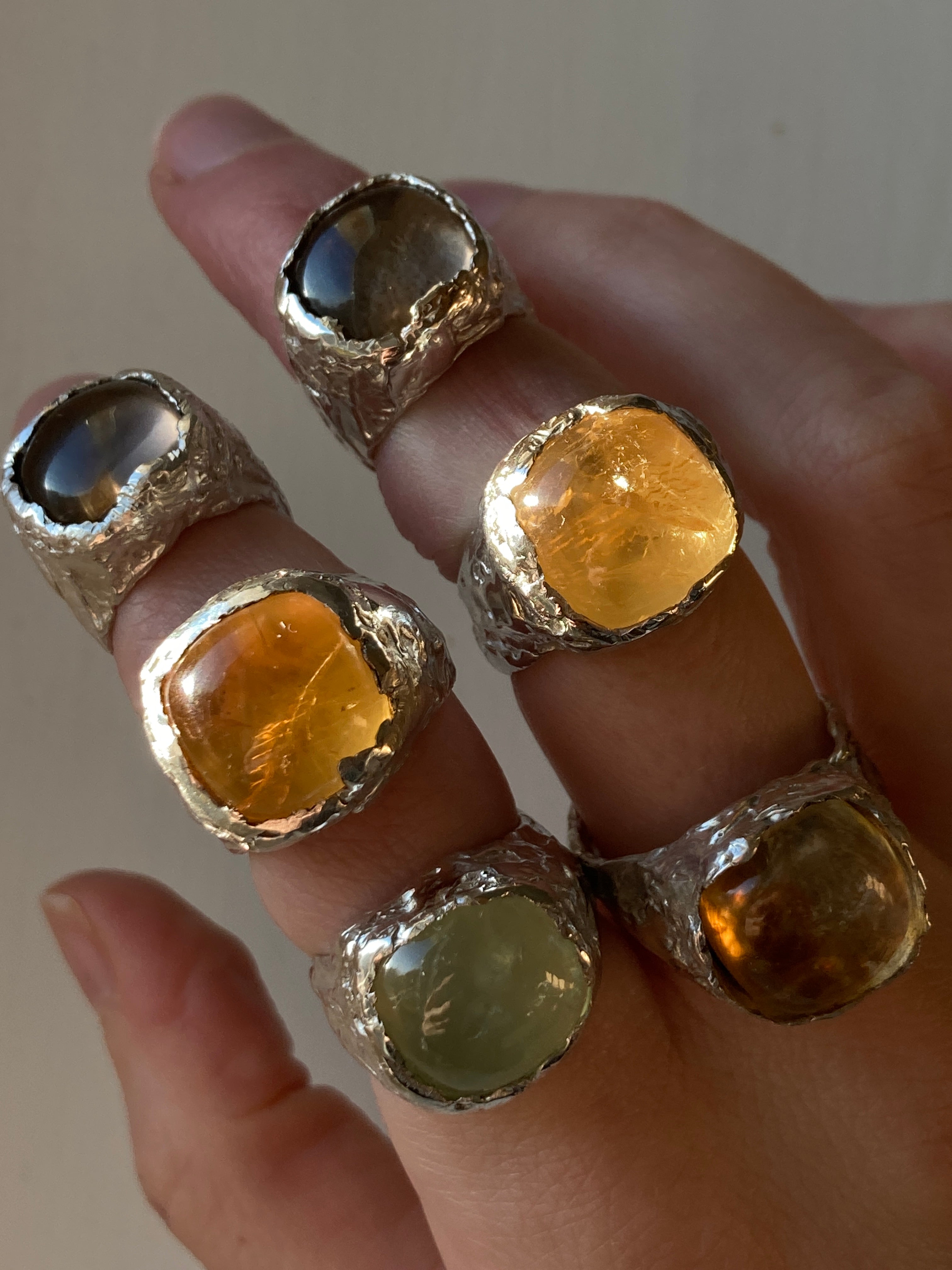 SOLA is a small Stockholm-based jewellery brand that creates made-to-order, handcrafted and elemental jewellery. The pieces often feature textures that subtly echo the volcanic terrain, tranquil waters, and rugged mountain peaks of the Italian landscape. Each creation is a quiet study in contrast—between refinement and rawness, structure and spontaneity. They reflect an appreciation for imperfection and the beauty found in natural irregularities. Therefore, no piece is like any other.