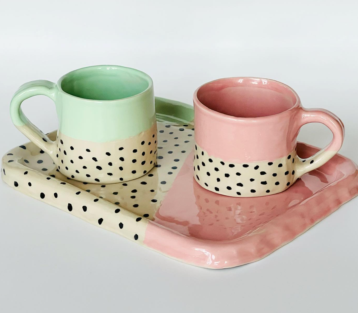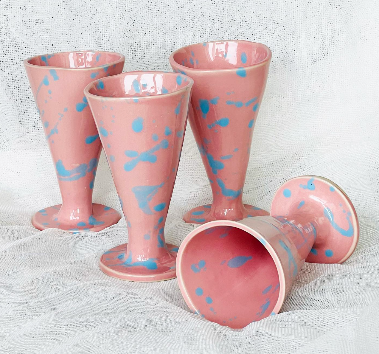 Emelie Strange skapar färgglad keramik under varumärket @strange_ceramics. Hon rullar, ringlar och nyper både lergods och stengods för att skapa mestadels funktionella föremål som muggar och skålar, men även skulpturer och tre-i-rad-spel.