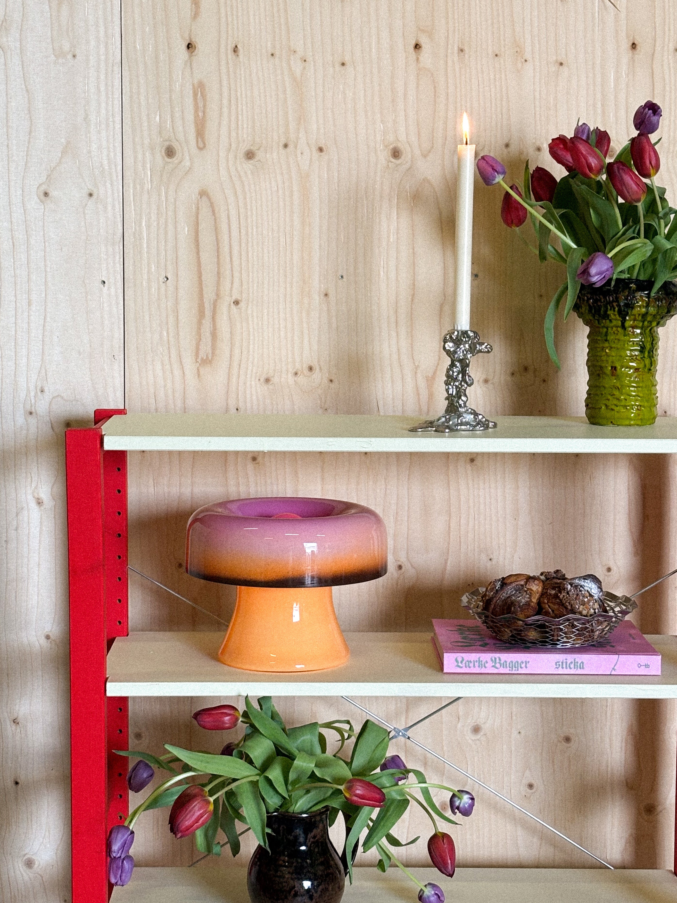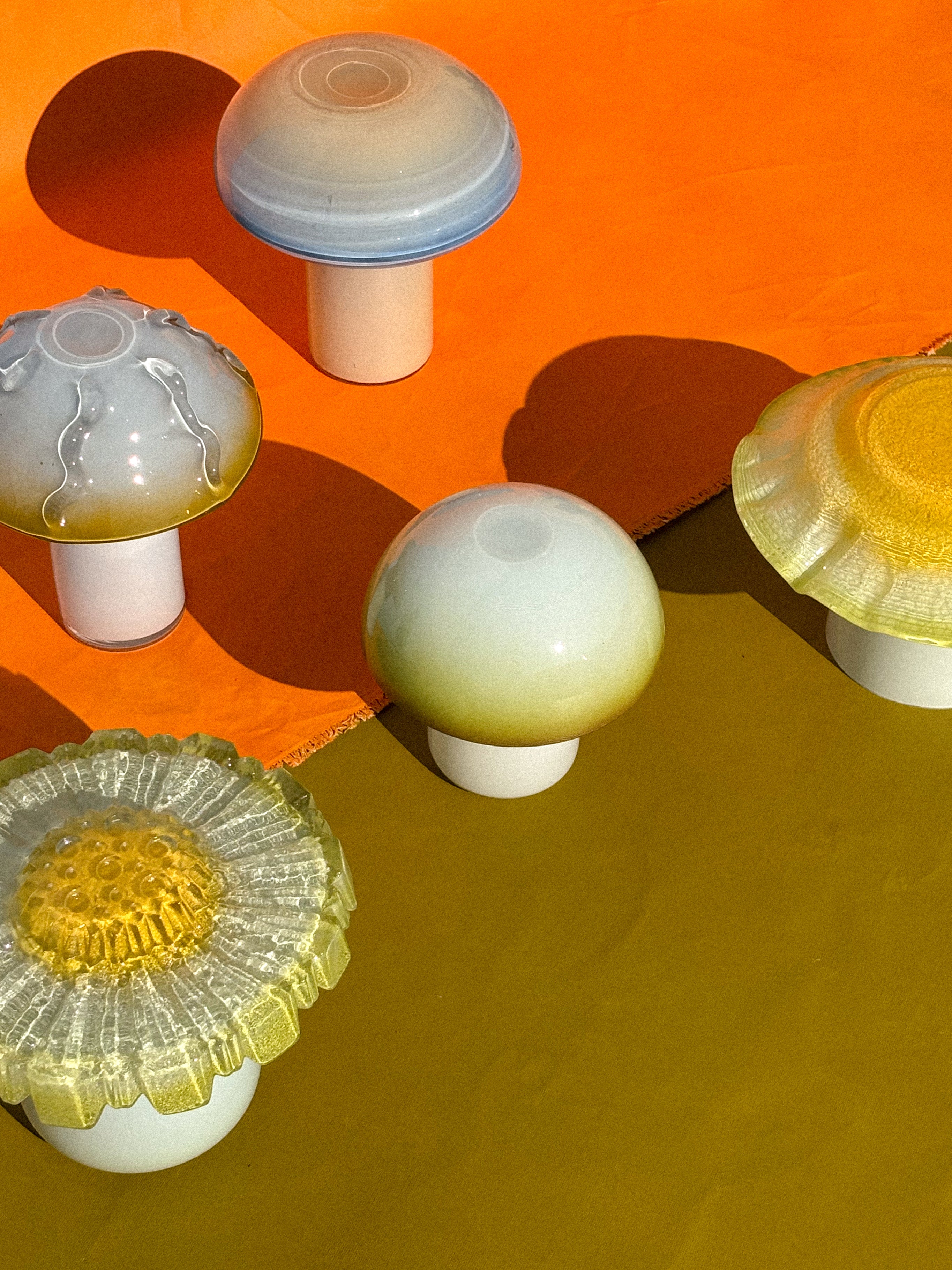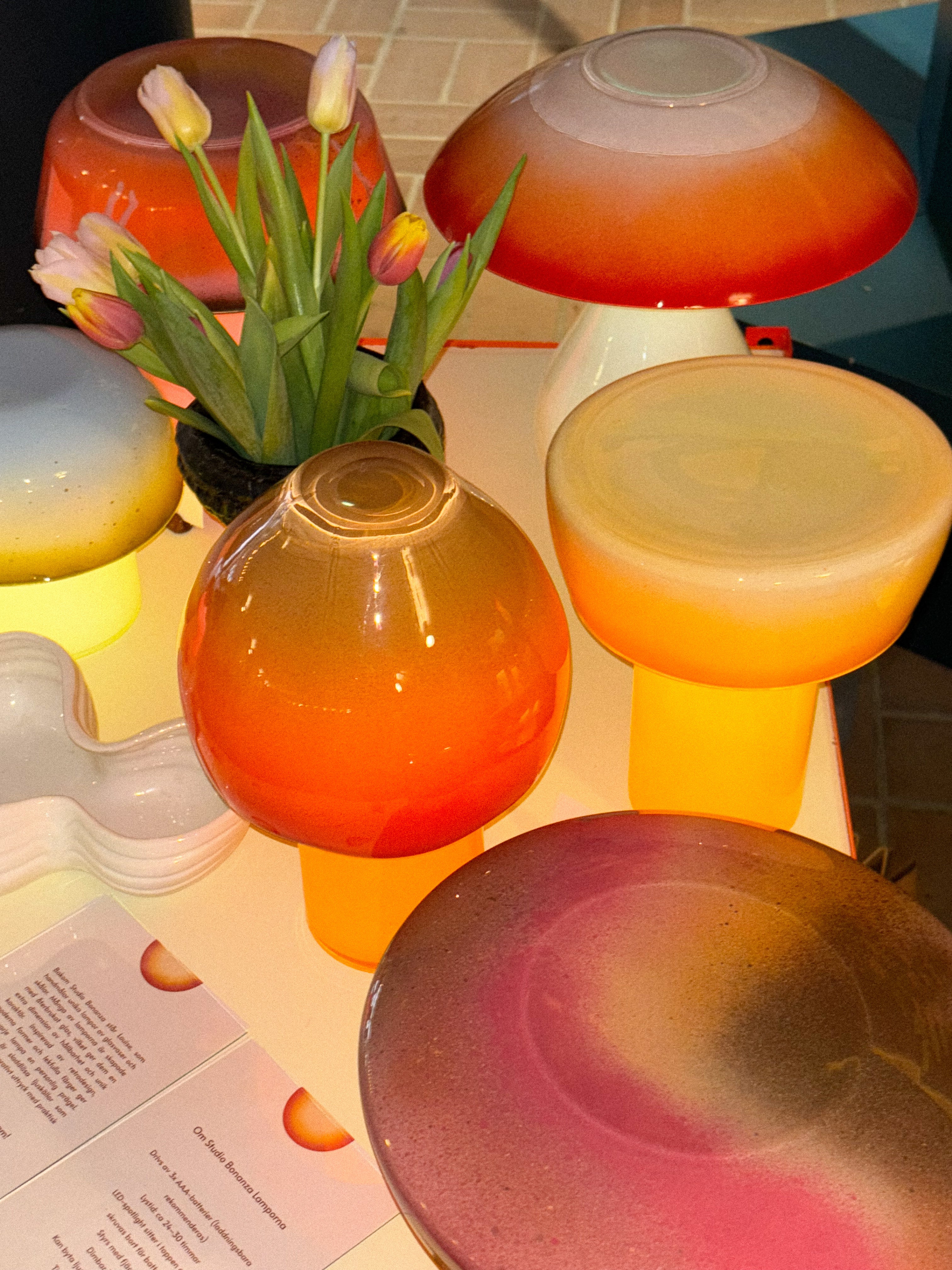 Färg, form och textur har alltid varit en naturlig del av mitt kreativa uttryck – först som makeupartist i modebranschen och nu genom mitt lamptillverkande på Studio Bonanza. Här handmålar jag lampor som jag sätter ihop av glasvaser och skålar. Jag använder ofta vintageglas, både för dess estetik och för att arbeta på ett mer hållbart sätt.