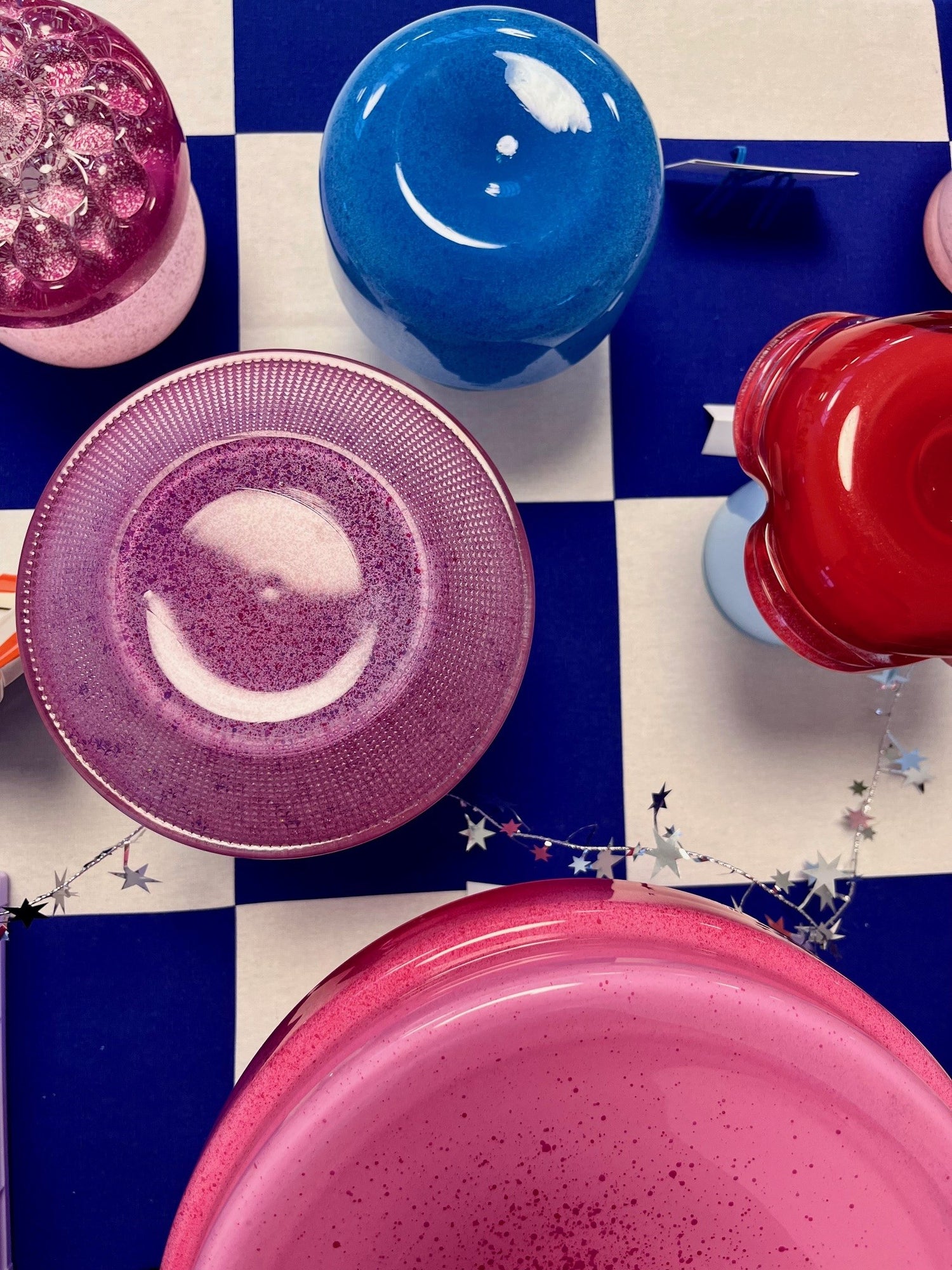 Studio Makalös förvandlar secondhandfynd till fantastiska, handmålade, sladdlösa lampor som verkligen är unika. Vintagefat och vaser återföds som livfulla, funktionella konstverk som lyser upp vilket rum som helst. Placera din lampa var du än behöver ett mysigt sken – i din bokhylla, på ditt sängbord, eller som den perfekta mittpunkten för en oförglömlig middag.