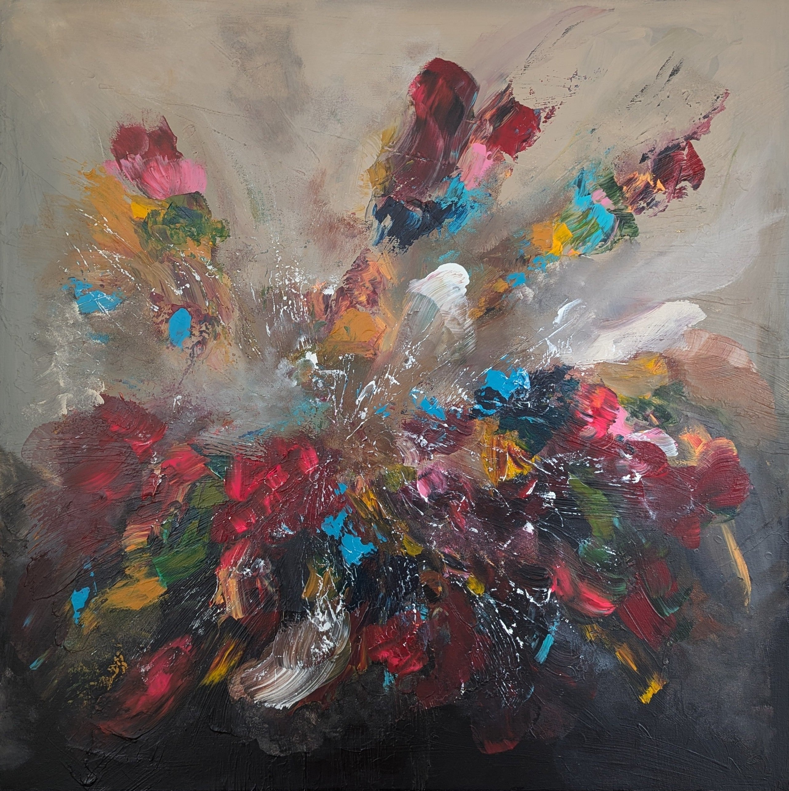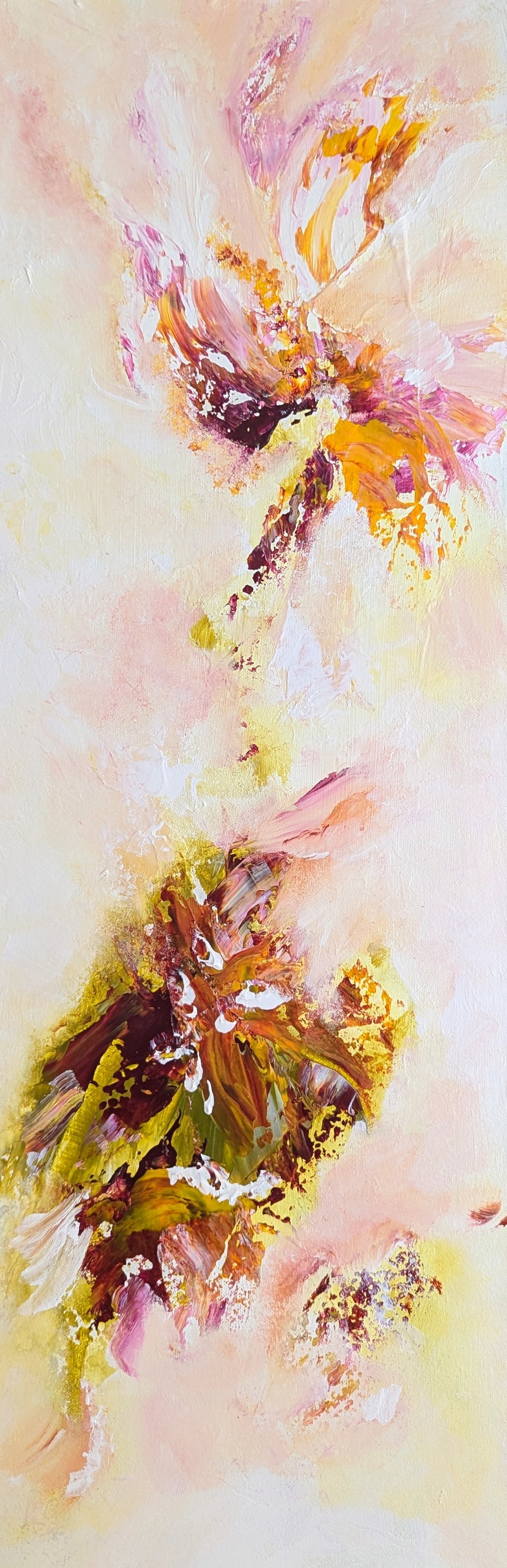My artistic expression is mainly characterized by the abstract. I paint colorful large works of art but still down to earth muted/soft tones in harmony.