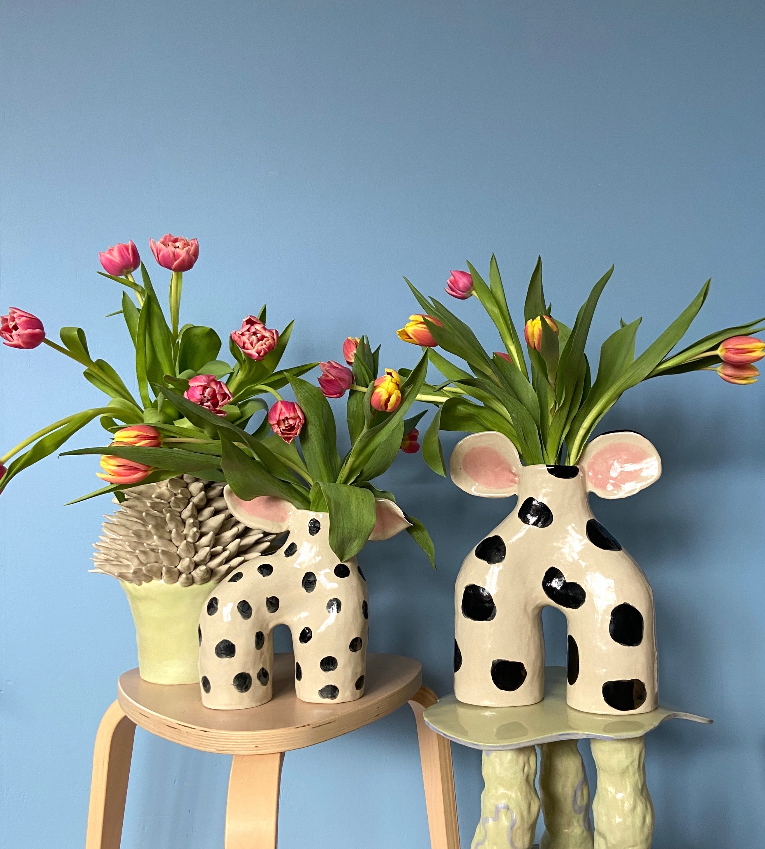 Jenny är socionom och studerar just nu trädgårdsteknik/design på SLU. Konstnärligt uttrycker hon sig genom organiska former och skulpturer lekfullt, med keramik som huvudmaterial. Hennes konst förkroppsligar en tvetydighet i funktionalitet och reflekterar över mänskligheten och naturen, jaget och normer.