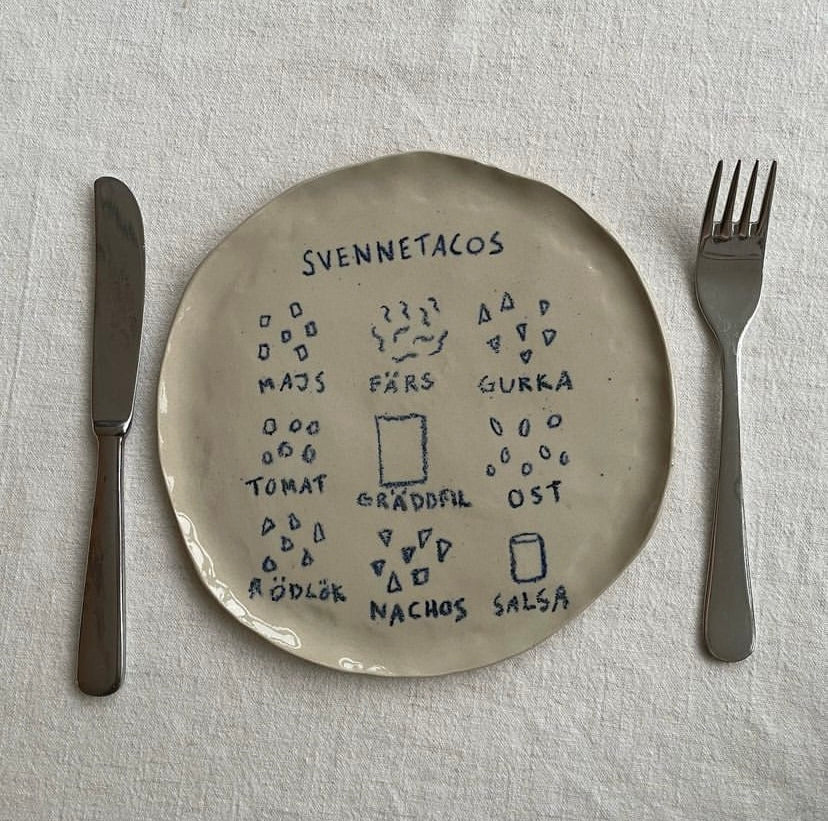 Jag fick nys om keramikens värld efter att ha gått en kurs när jag var 15 år och har varit helt fast sedan dess. Alla mina alster är gjorda med byggteknikerna tumning, ringling och kavling. Jag målar allt för hand med engobe (keramikfärg) och glaserar sedan i transparent glasyr. Inspiration finner jag i allt jag ser i vardagen, mycket i skafferiet och kylskåpet. Jag har fastnat för att skildra vår svenska matkultur i min keramik, genom att återskapa våra mest folkkära produkter, i både konsthantverk och prydnadsföremål. När jag är i keramikstudion får jag uttrycka all min kreativitet och i den stunden finns det inget annat än leran.