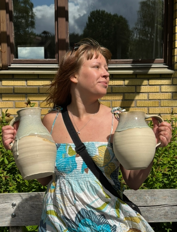 I turn graceful, soft shapes decorated primarily with my own glazes. I want my ware to be both beautiful to look at and comfortable to use. I see my ceramics as a collaboration with the clay and the long-standing tradition that comes with it. I therefore like to use glazes that contain the same clay as the ware or to leave the ware to some extent unglazed, to leave room for the clay to take its place. When I work sculpturally, I focus on creating an emotional encounter between the work and the viewer. I am inspired by people's inner selves and the conflicting emotions that can exist in harmony.