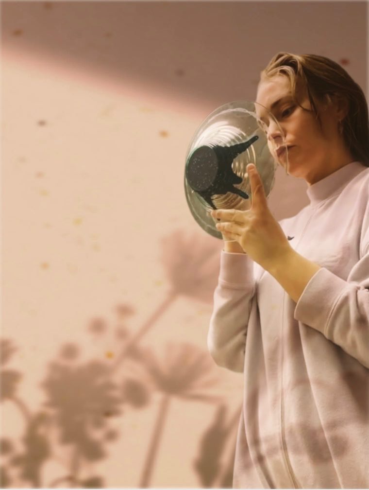 Varje lampa jag skapar är handmålad och monterad från dessa funna skatter, med färger och former valda intuitivt. Genom att lägga till en ljuskälla vaknar glaset till liv igen — lyser, skiftar och avslöjar oväntade nyanser.