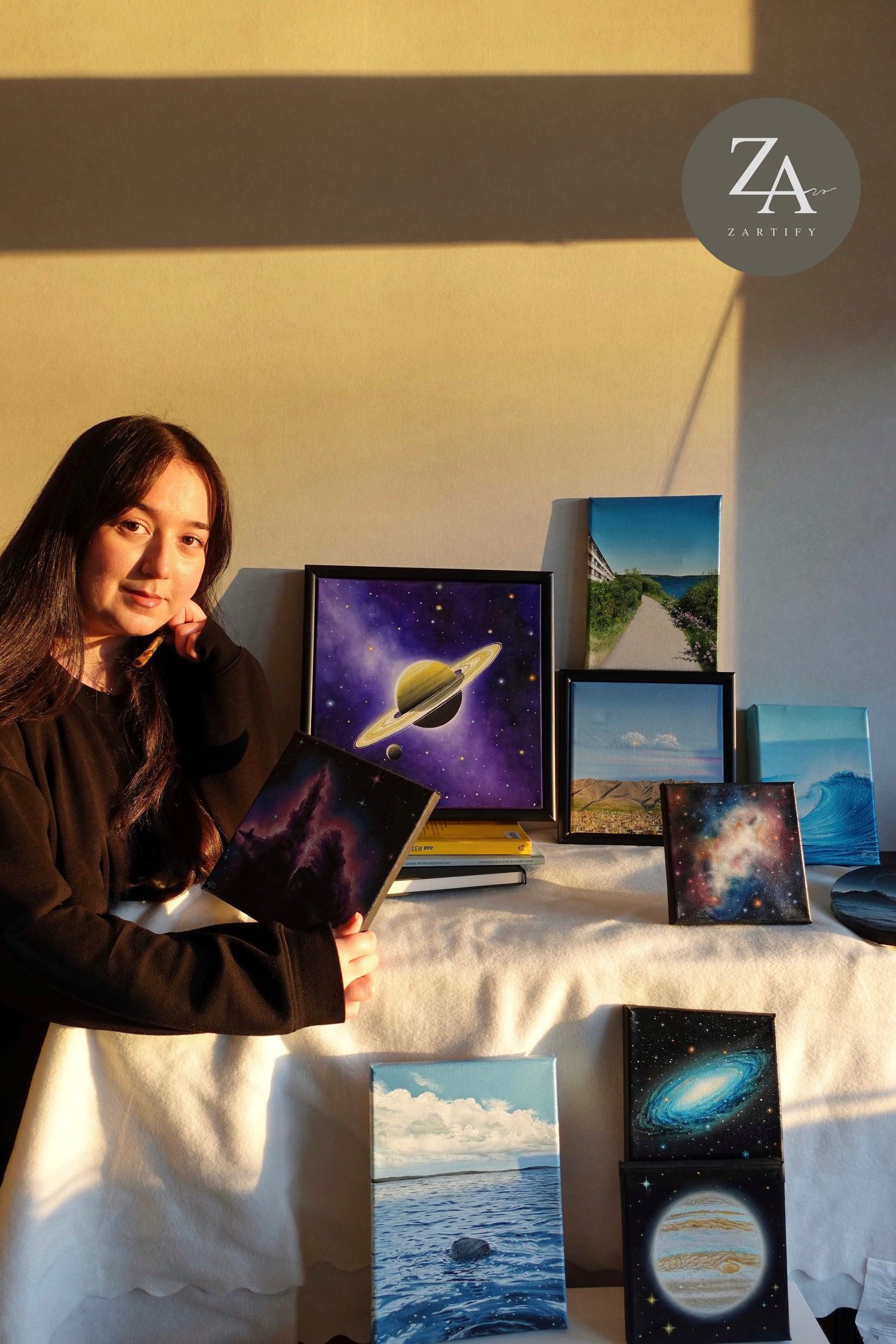 Zin, konstnären bakom Zartify, har ägnat sitt liv åt att skapa konst som fångar universums och jordens naturs skönhet, med en touch av fantasi. Hennes passion för konstnärligt uttryck började vid sex års ålder, och hon har aldrig lagt ner sina konstmaterial sedan dess.