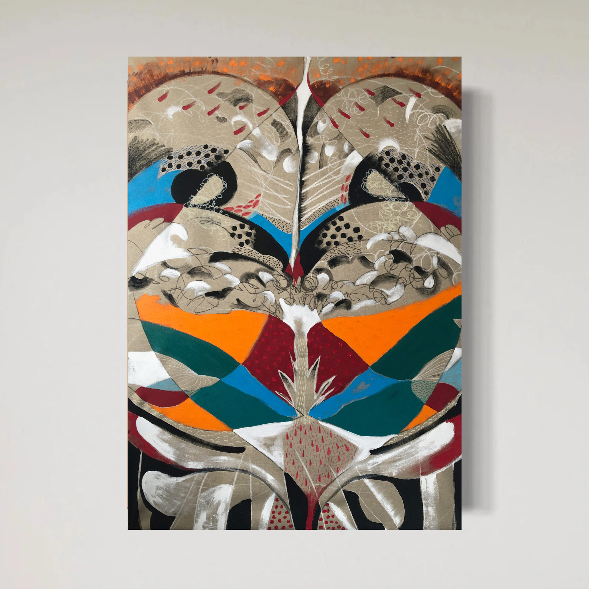 Acrylics and crayons on canvas.
