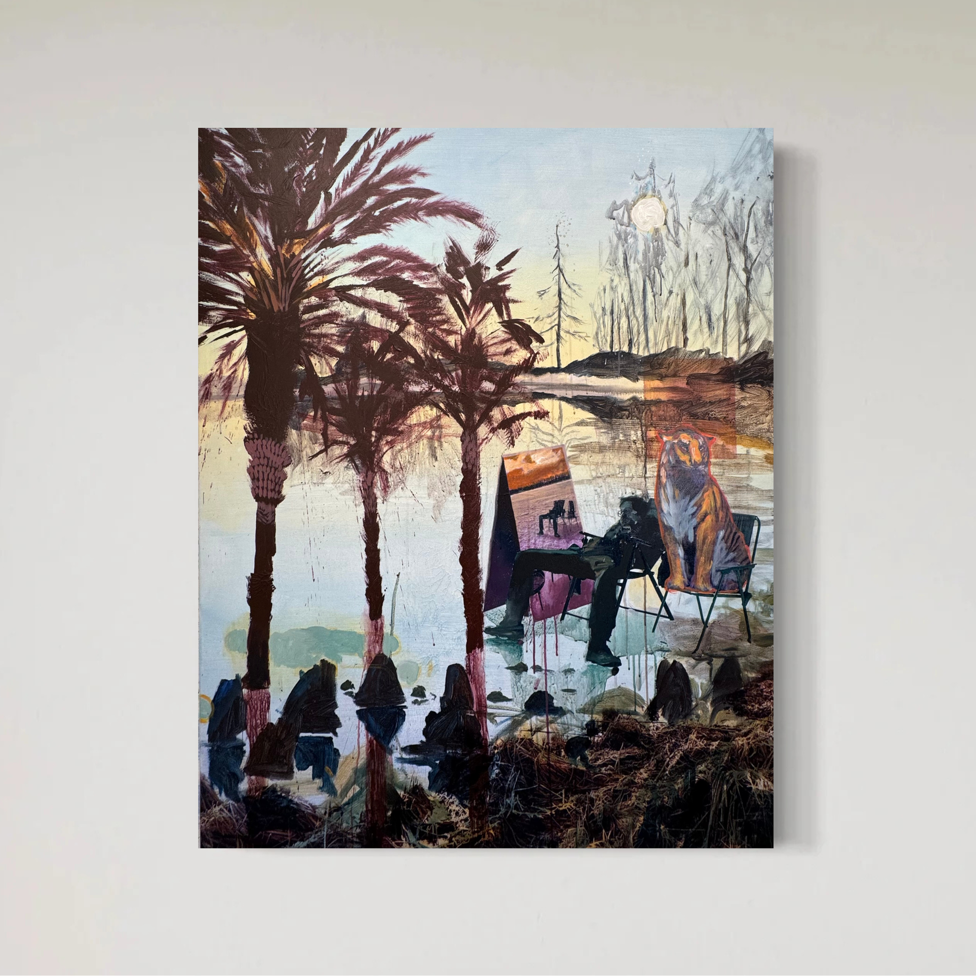 I combine images and spaces into new worlds; in this one, a man and a tiger take their place in the foreground, sharing their presence within the image.