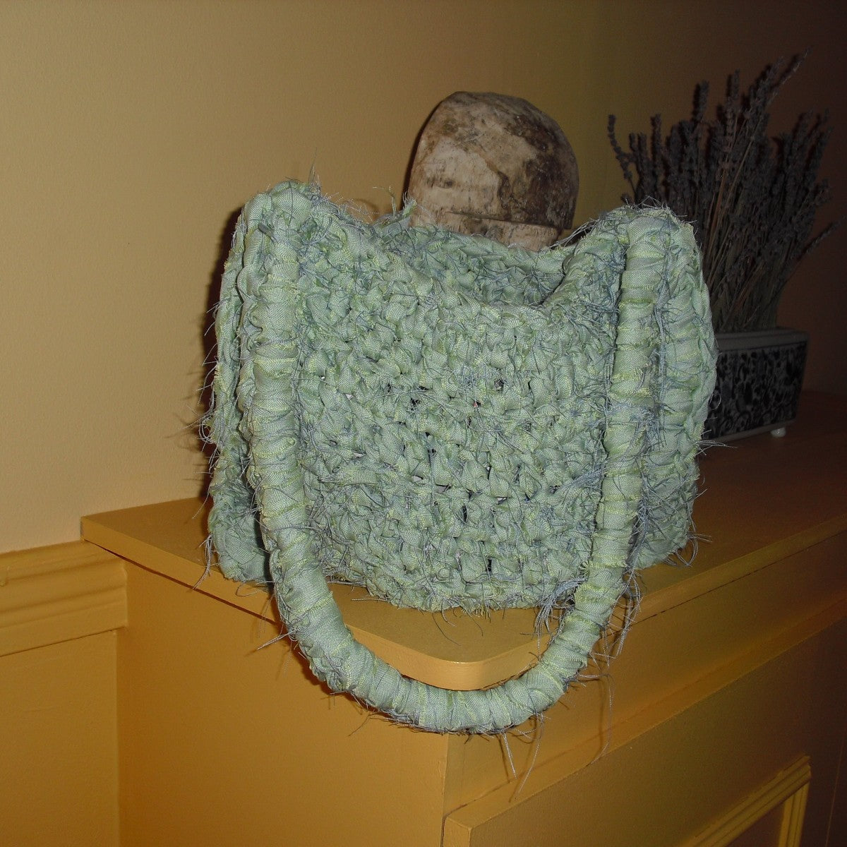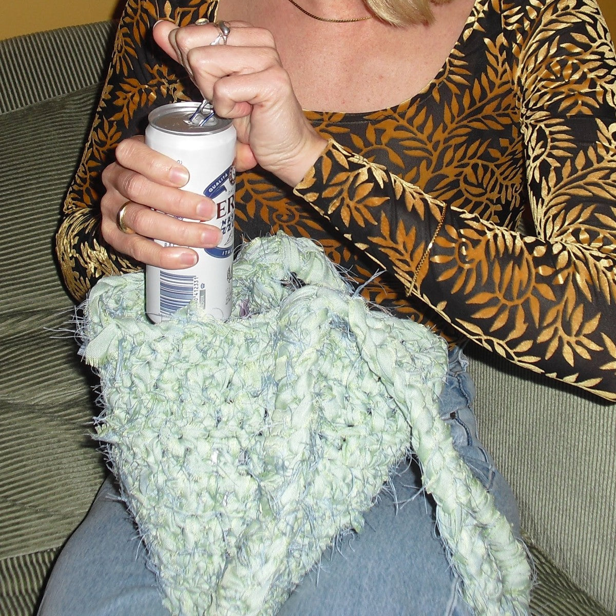 Denna "saga"-väska kommer med en längre rem så att du kan bära den crossbody. Tyget har en härlig mintgrön färg med inslag av ljusblått – det skimrar lite. Perfekt när du vill ha en väska som rymmer det viktigaste men ändå känns lätt och fri. Superenkel att slänga över axeln och ge dig iväg.