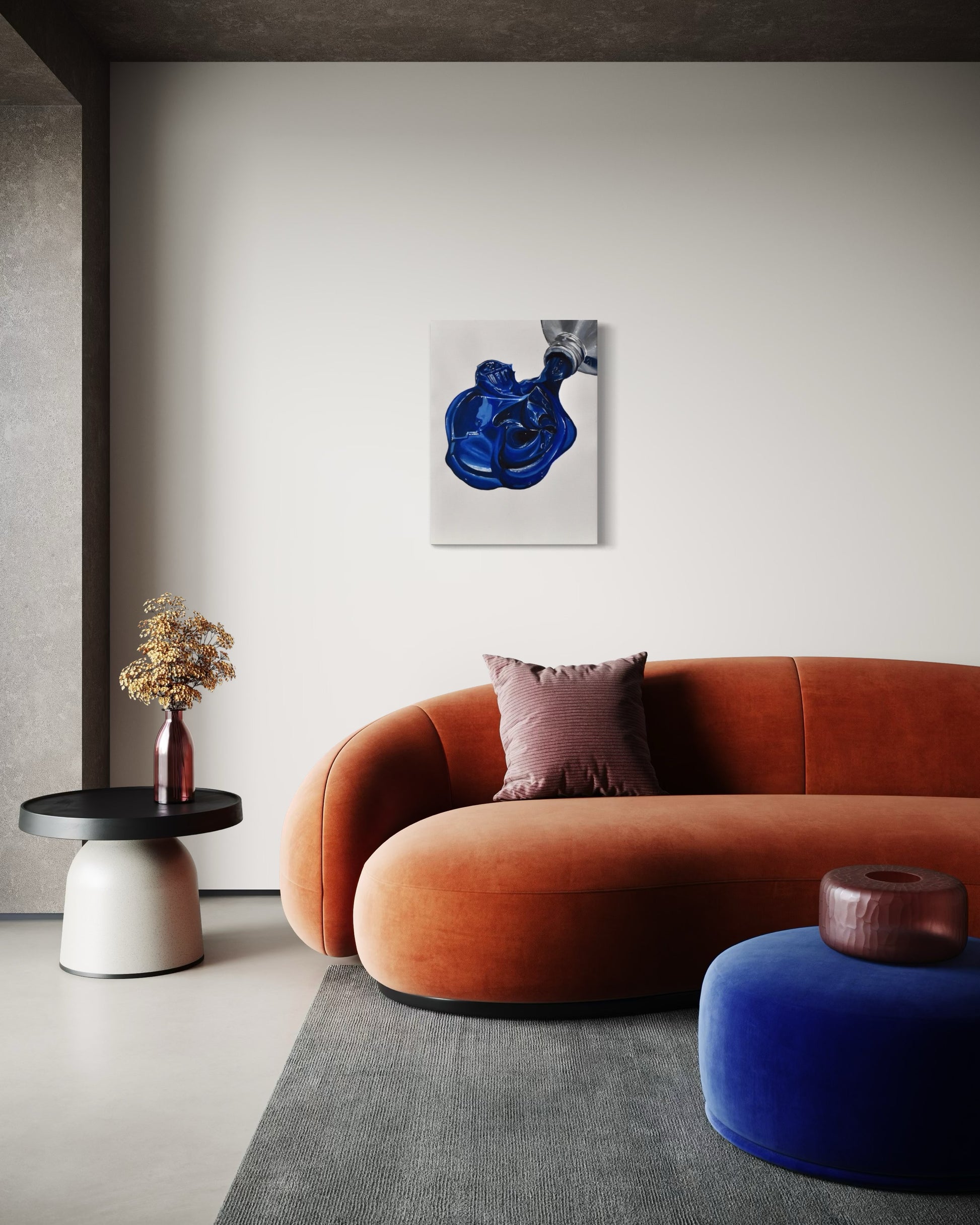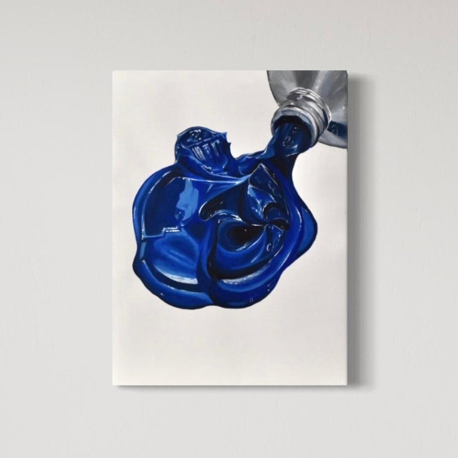 Ett färgstarkt konstverk av Olga Lorenz som föreställer akrylfärg, målad med akryl på vit duk. Lyft upp din heminredning med denna unika, stilfulla tavla!