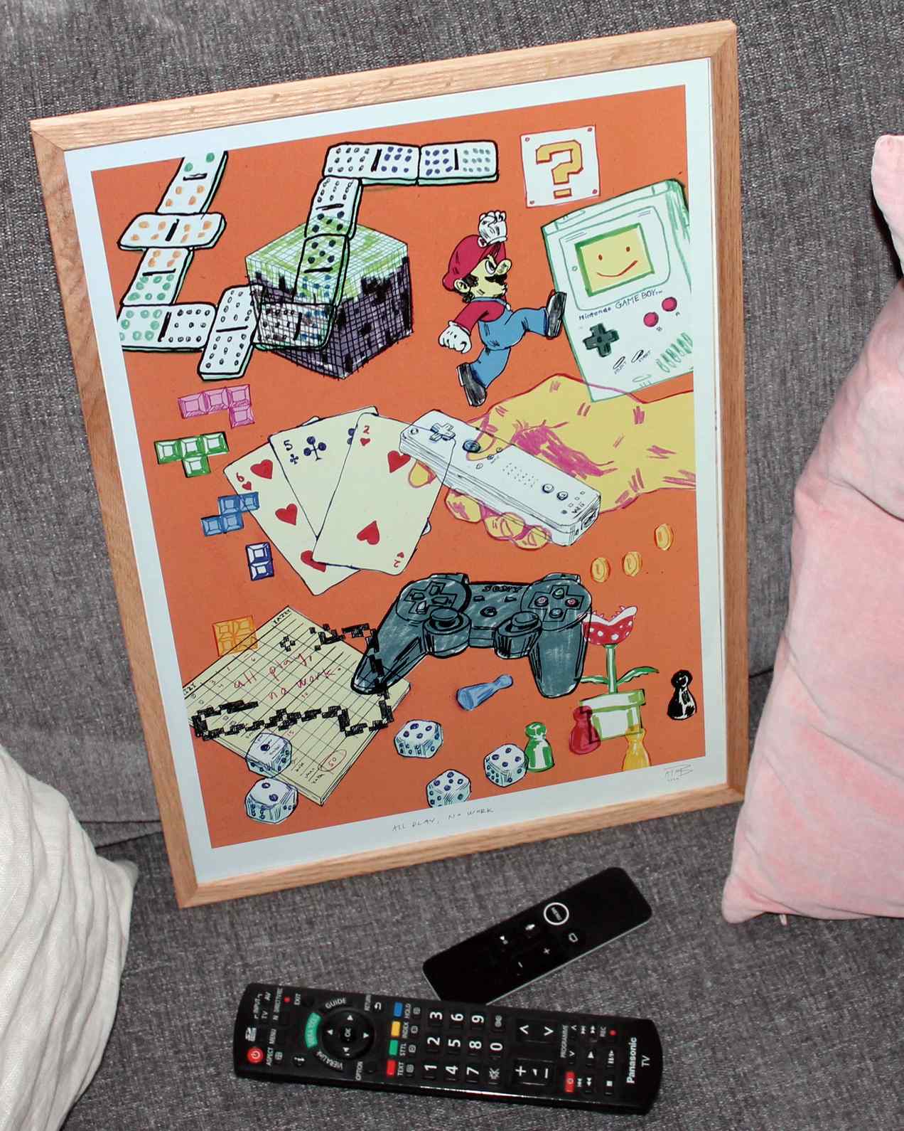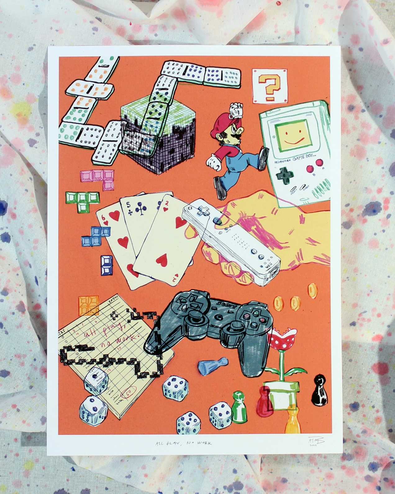 Allt arbete och ingen lek gör Jack till en tråkig pojke. Var inte som Jack. Handritad och digitalt komponerad. Tryckt på högkvalitativt 170 g papper och individuellt signerat.