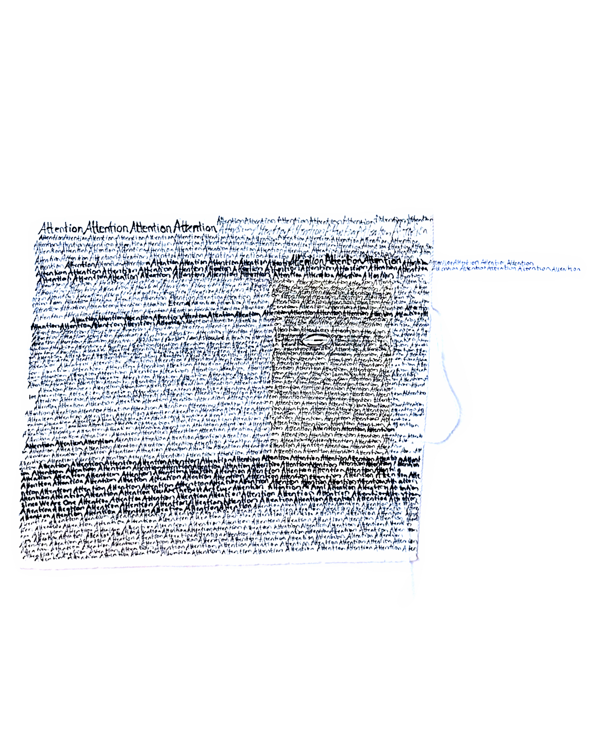 "ATTENTION" är inspirerad av koaner inom zenbuddhismen, som är utformade för att stilla sinnets aktivitet. I dessa verk döljs noggrant utvalda ord bland en mängd andra. När betraktaren söker efter orden, tvingas de att stanna upp och ge verket genuin uppmärksamhet, på samma sätt som jag behövde göra för att skapa det. Jag hoppas att verket ger dig ett eller flera ögonblick av stillhet i en annars bullrig värld.