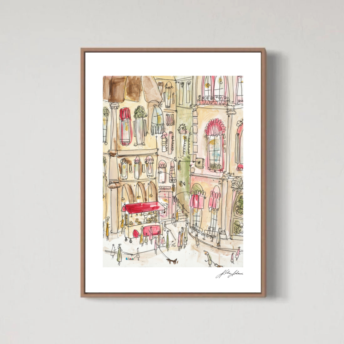 Tillsätt en touch av lekfullhet i ditt utrymme med konstpostern “Pretzel”, en charmig, handsignerad illustration av Nike Adawi. Inspirerad av det livliga europeiska gatulivet, med en färgstark kringelvagn, detaljerad arkitektur och livliga folkmassor. De mjuka färgerna och den intrikata linjearbetet skapar en både lekfull och sofistikerad atmosfär.