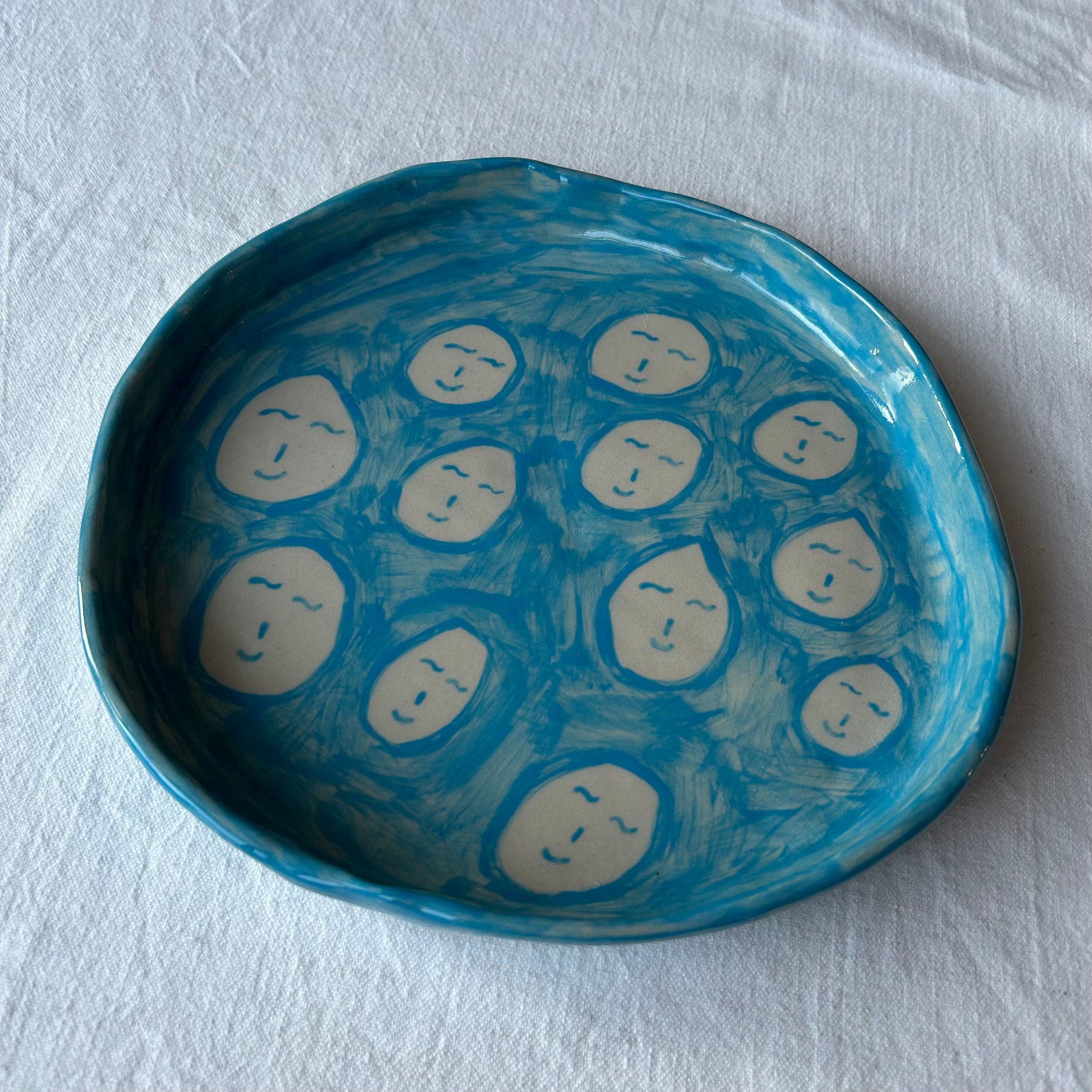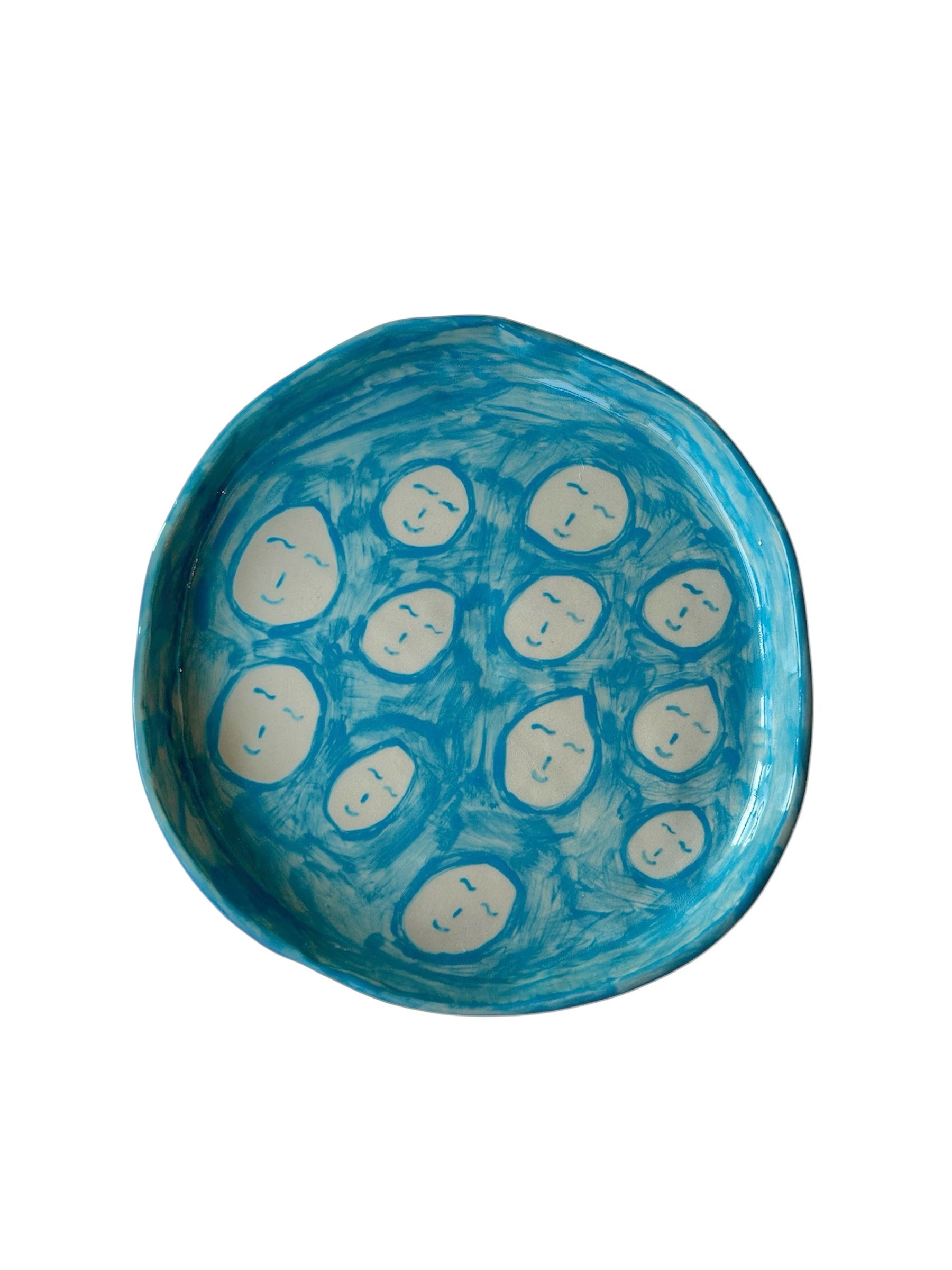 Handgjord keramik i stengodslera, målad med engobe och glaserad med en transparent glasyr.