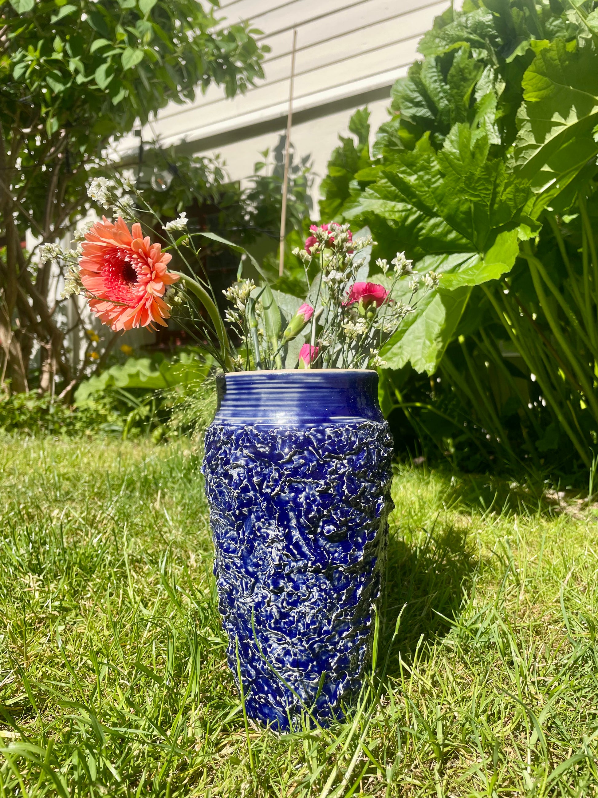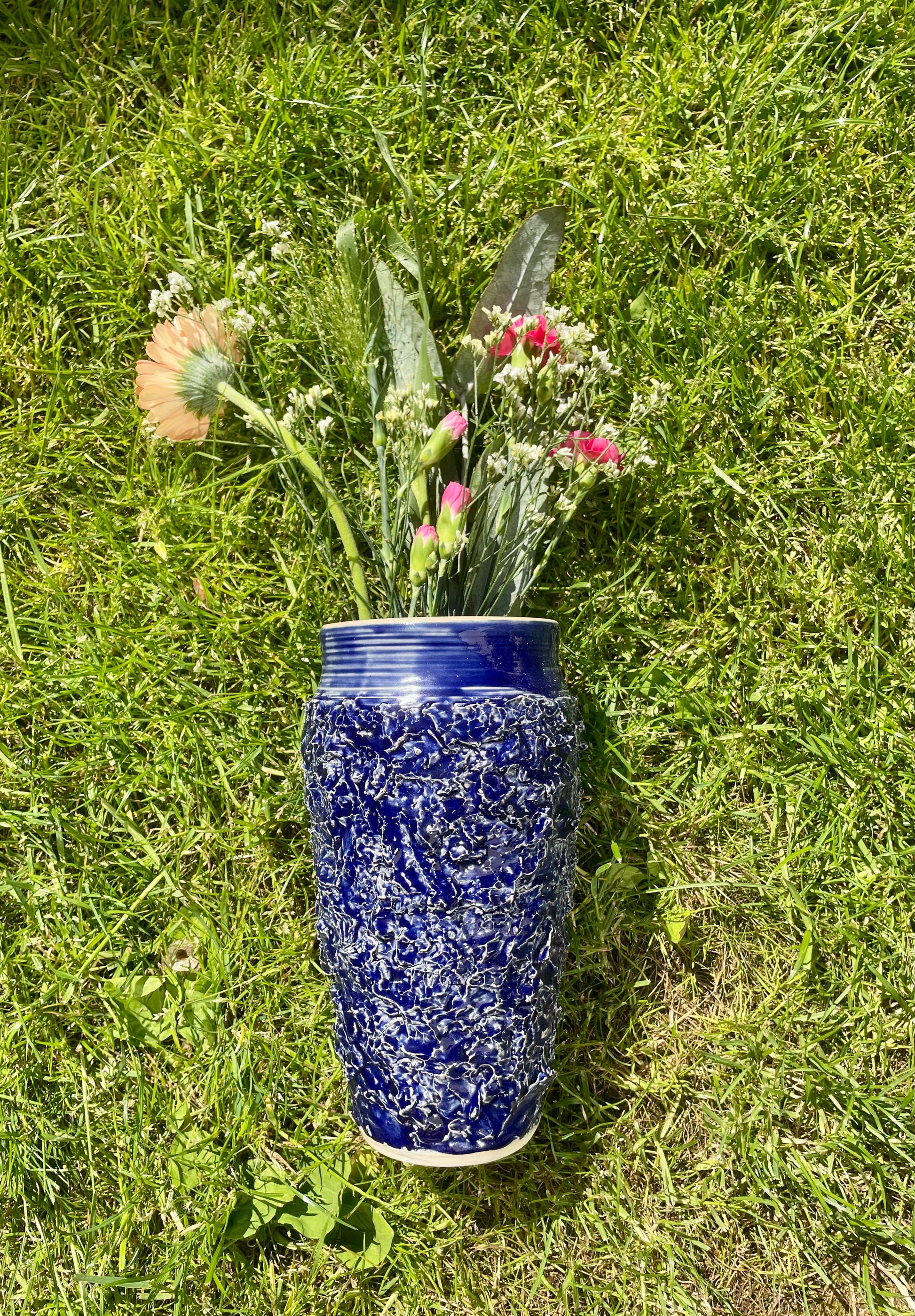 En unik, handgjord blå vas av Jesper Bergstrand! Tillverkad med precision av förstklassig stenlera. Ge ditt hem ett lyft med denna unika design, oavsett om du har dina favoritblommor i eller har den bara som den är.