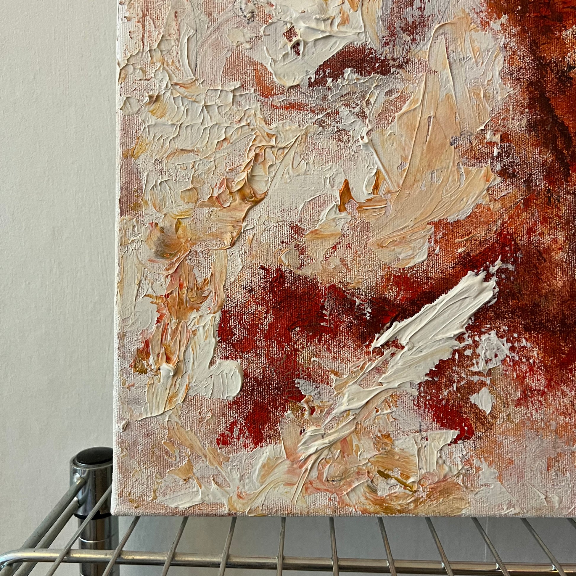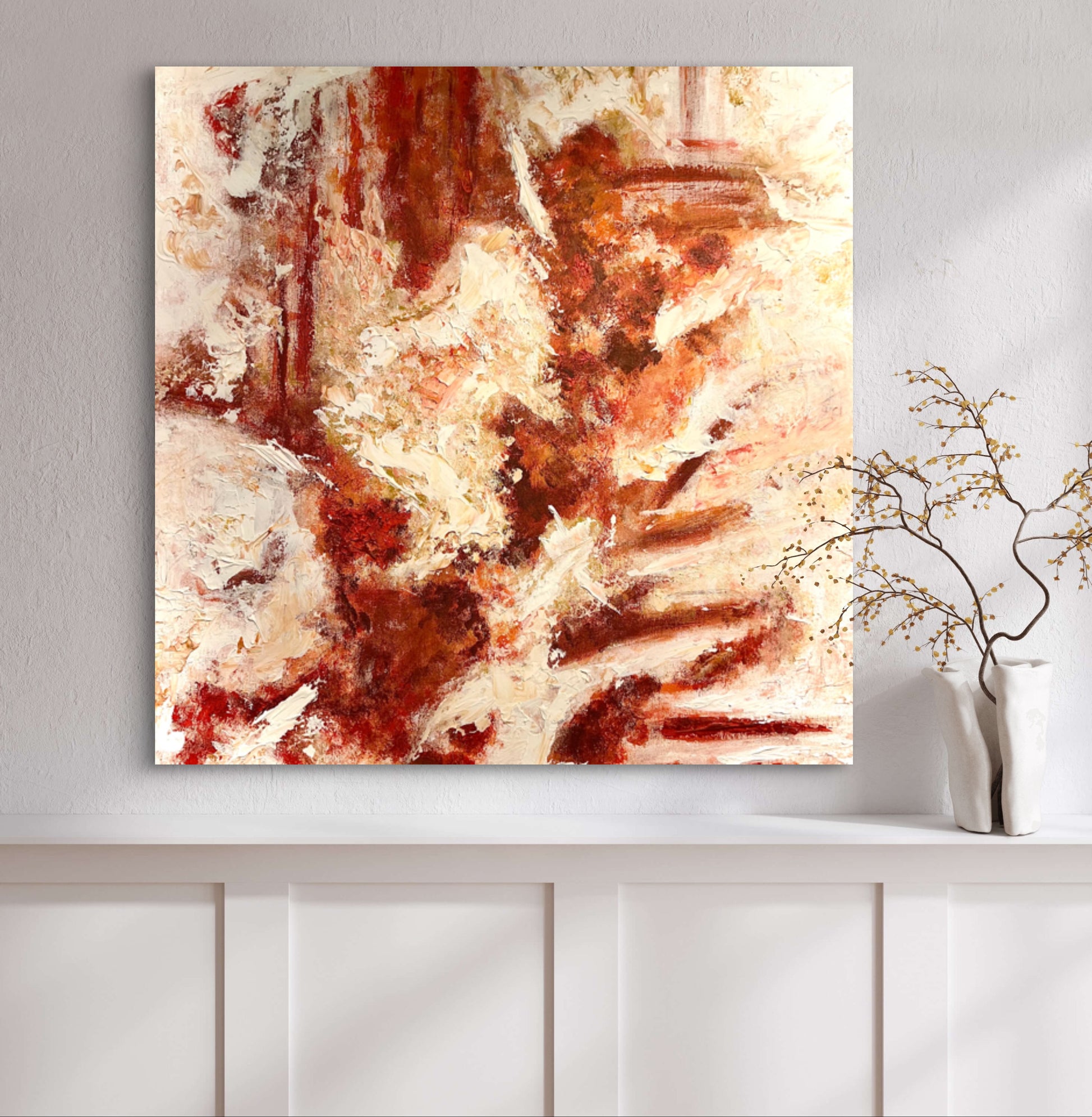 En resa genom glödande nyanser av rött och vitt. Burning Hours vibrerar av energi, där färgerna smälter samman likt fladdrande lågor i ständig rörelse. Ett verk som fångar stundens hetta och passion.